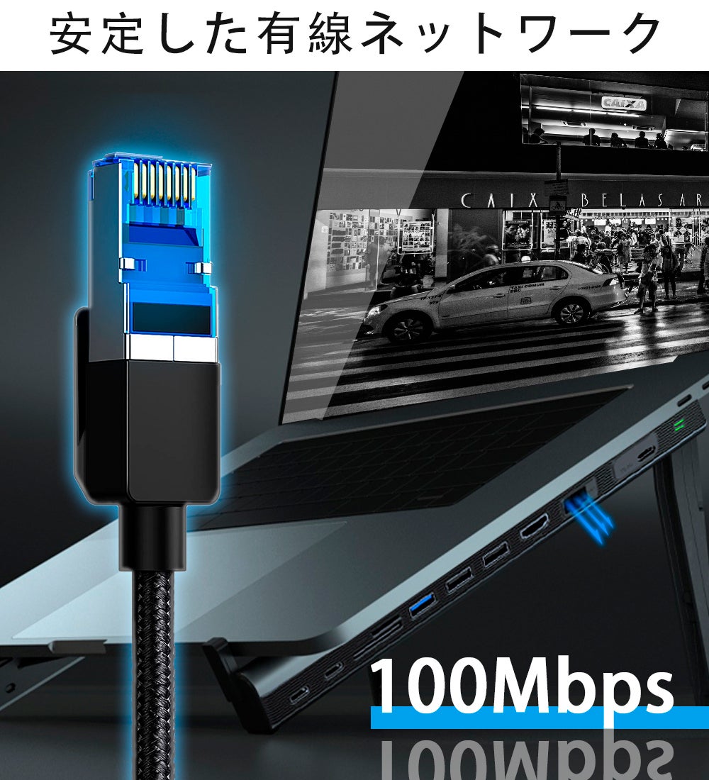 LAN ポートは100 Mbps高速通信接続をサポートします。映画やゲームをスムーズに楽しむことができ、不安定なWi-Fi接続問題の解決策となります。