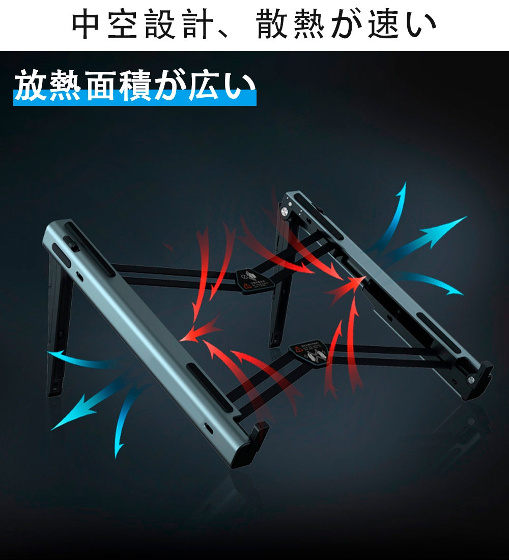 当商品は中空設計なので、PC裏面の放熱面積が増え、ノートパソコンの底面の通気性が向上します。