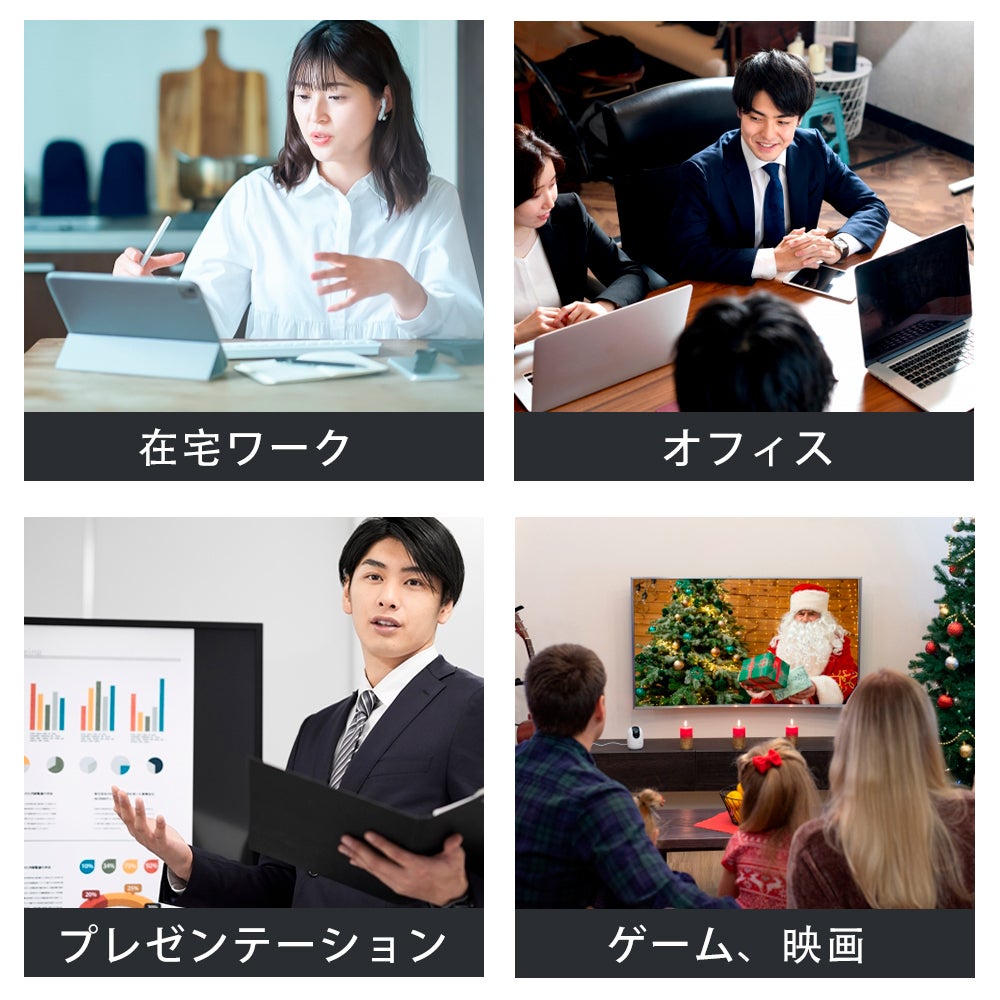 モニターやプロジェクターなどの外部ディスプレイに接続することで、仕事や会議でのプレゼンをより画質が高く効果的に行え、様々な場面に大活躍。