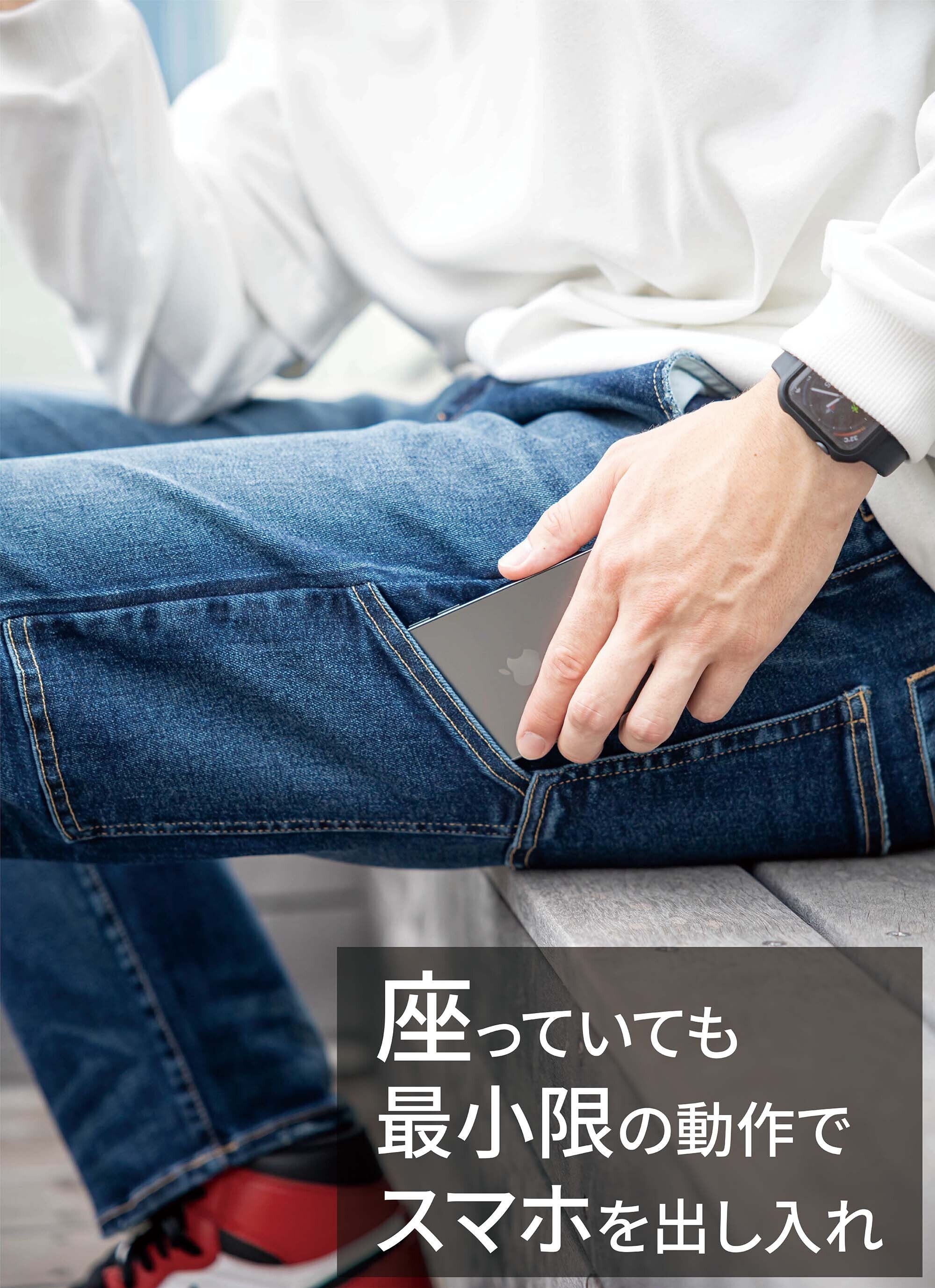 後ろポケットに入れたスマホをお尻で踏むこともありません。