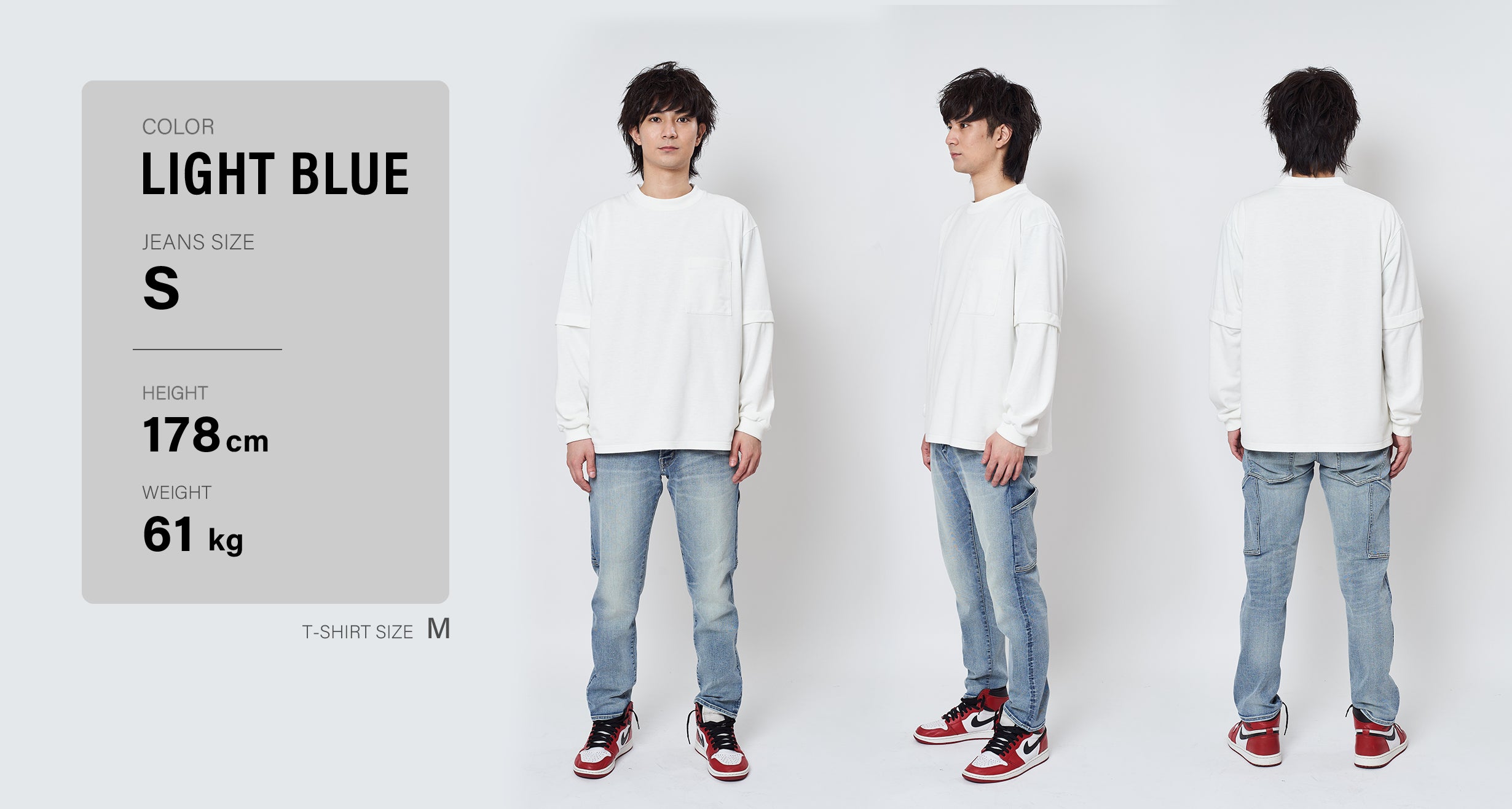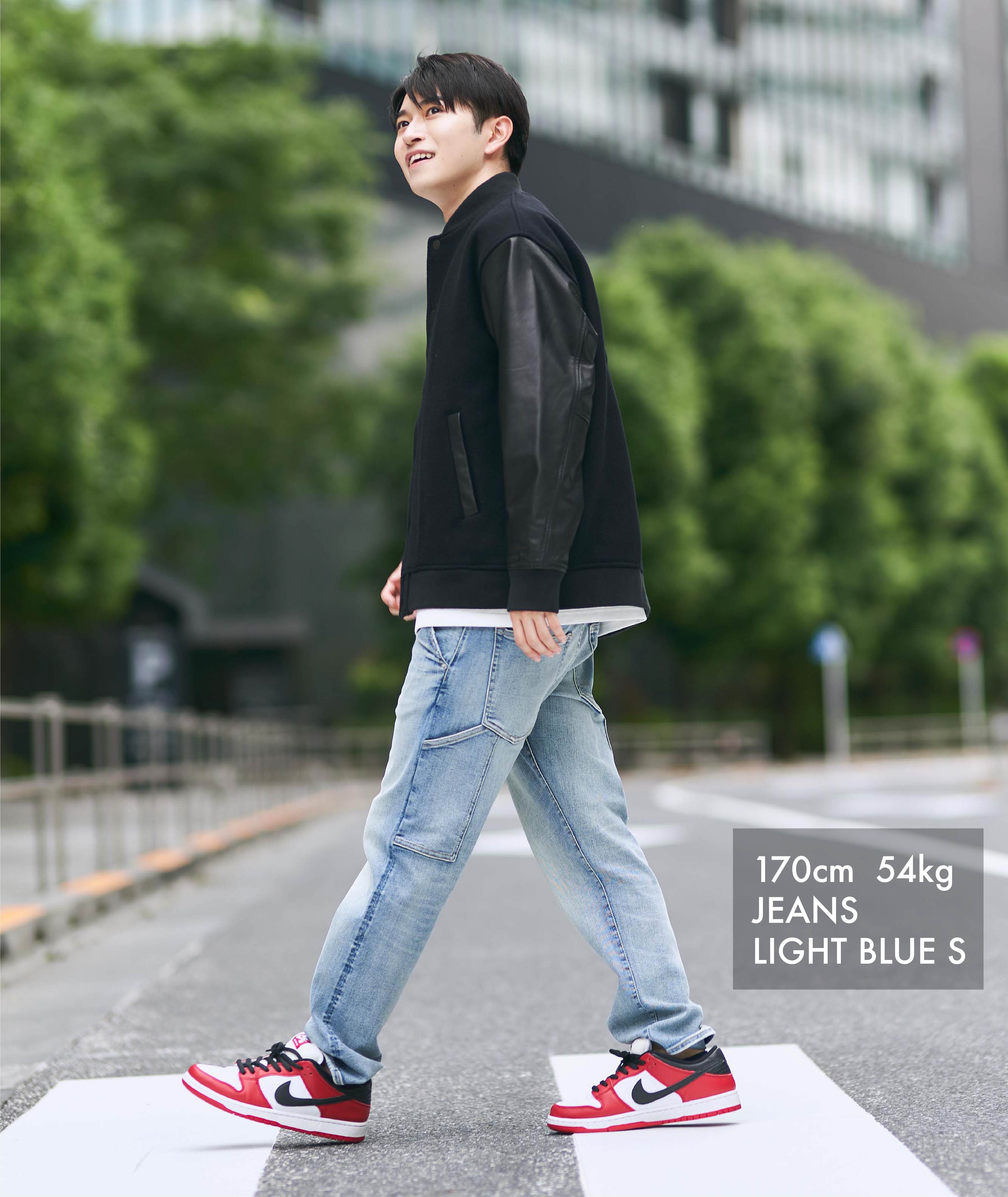 166cm 62kg JEANS LIGHT BLUE S着用
