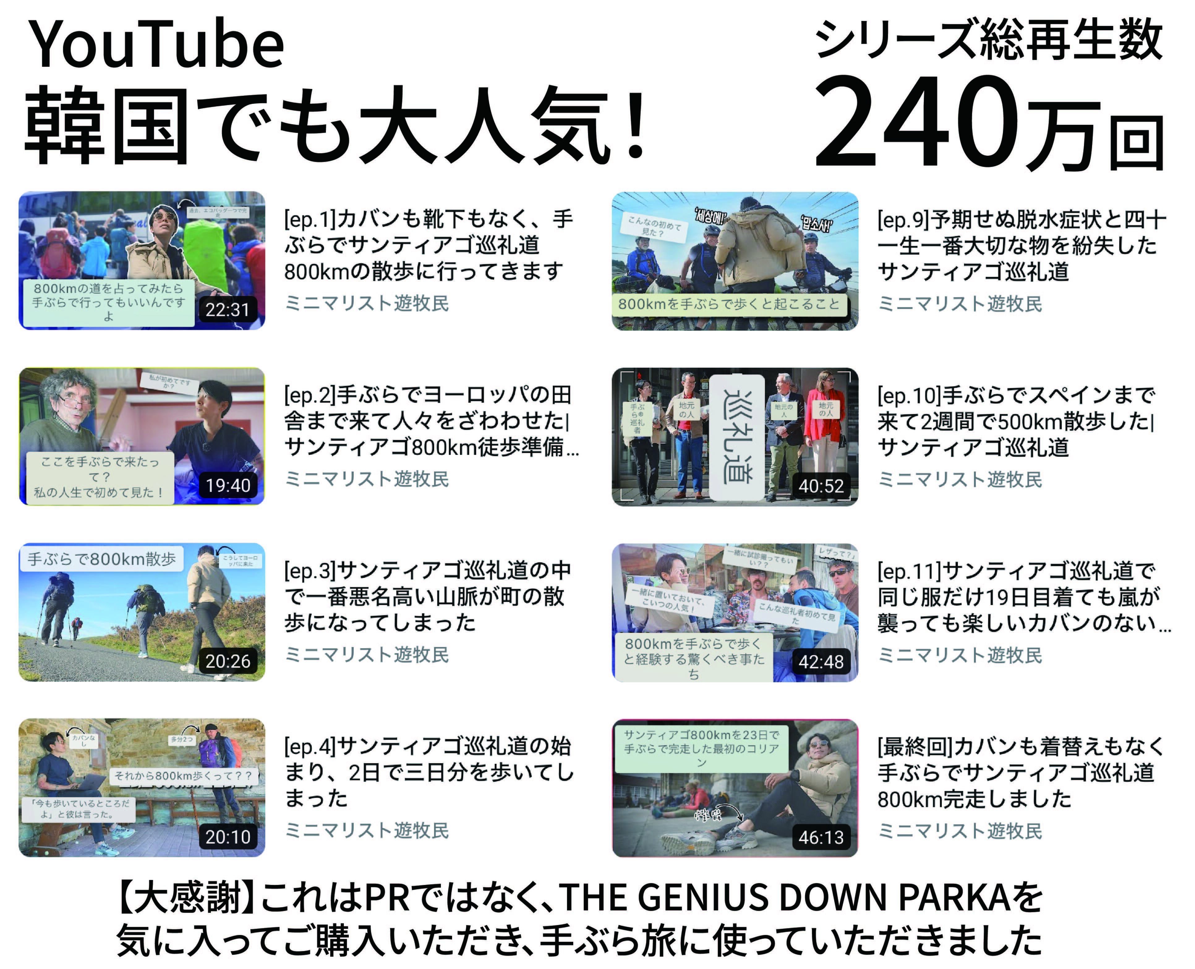 最上位モデル「THE GENIUS DOWN PARKA」を着て、手ぶら800kmの旅に挑戦したYouTube動画