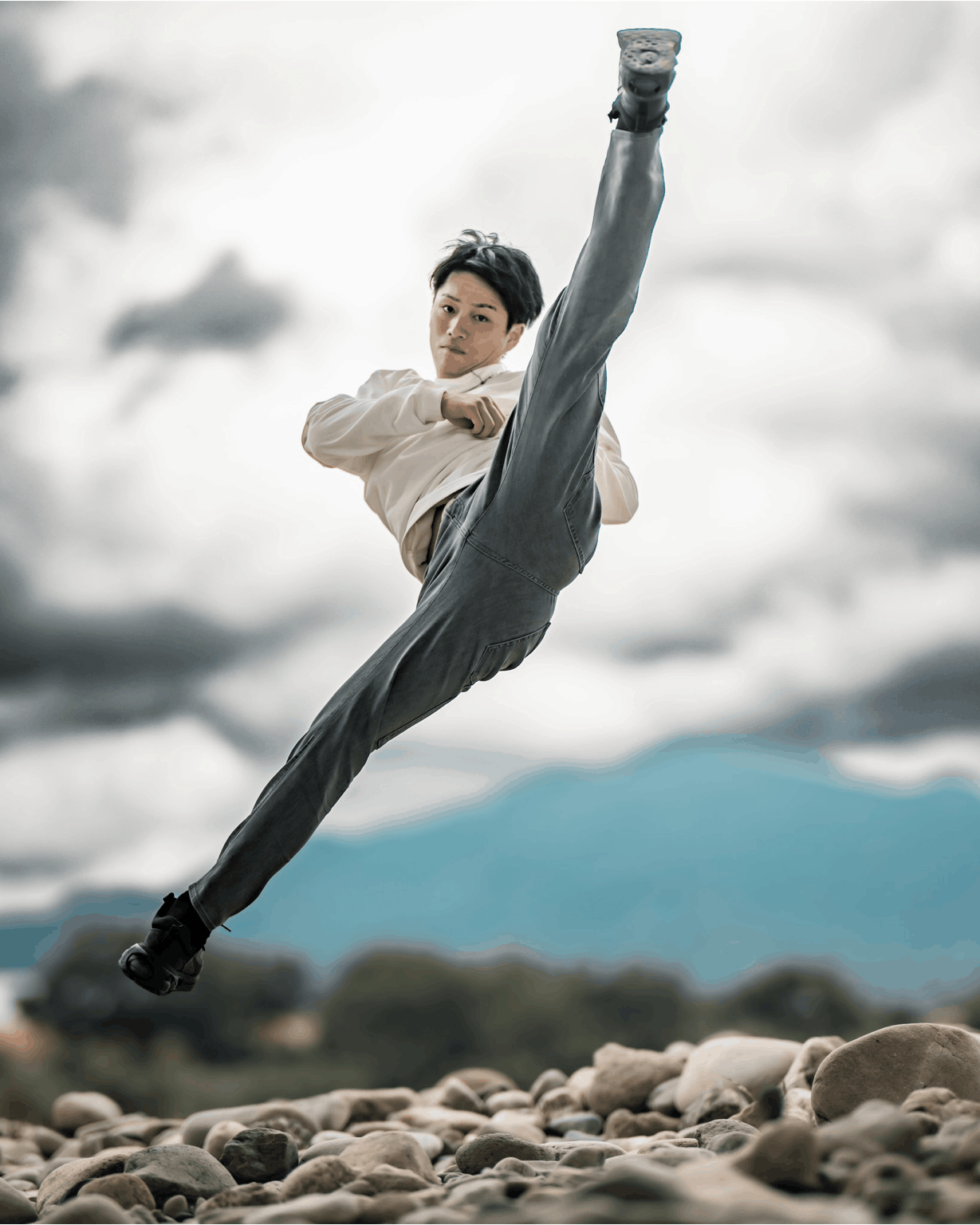 ストレッチ性の限界に挑戦するため、トリッキングアスリート:大成裕仁氏にご協力いただきました。