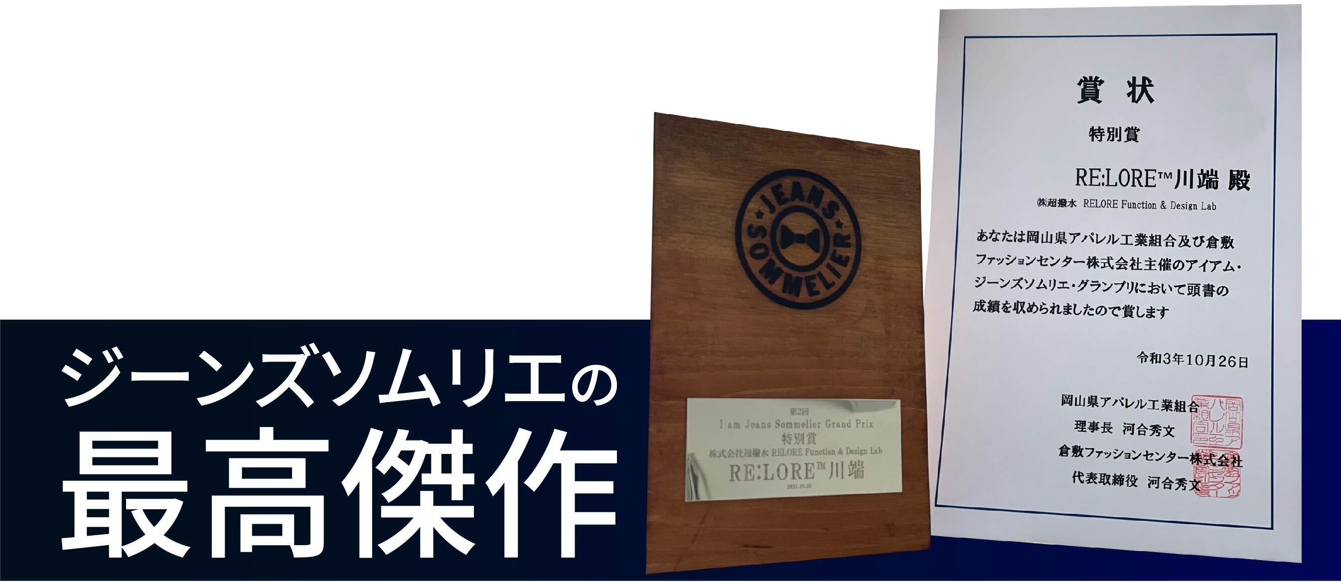 RE:LORE™の代表を務める川端は、2021年ジーンズソムリエ・グランプリにおいて『特別賞』を受賞しました。