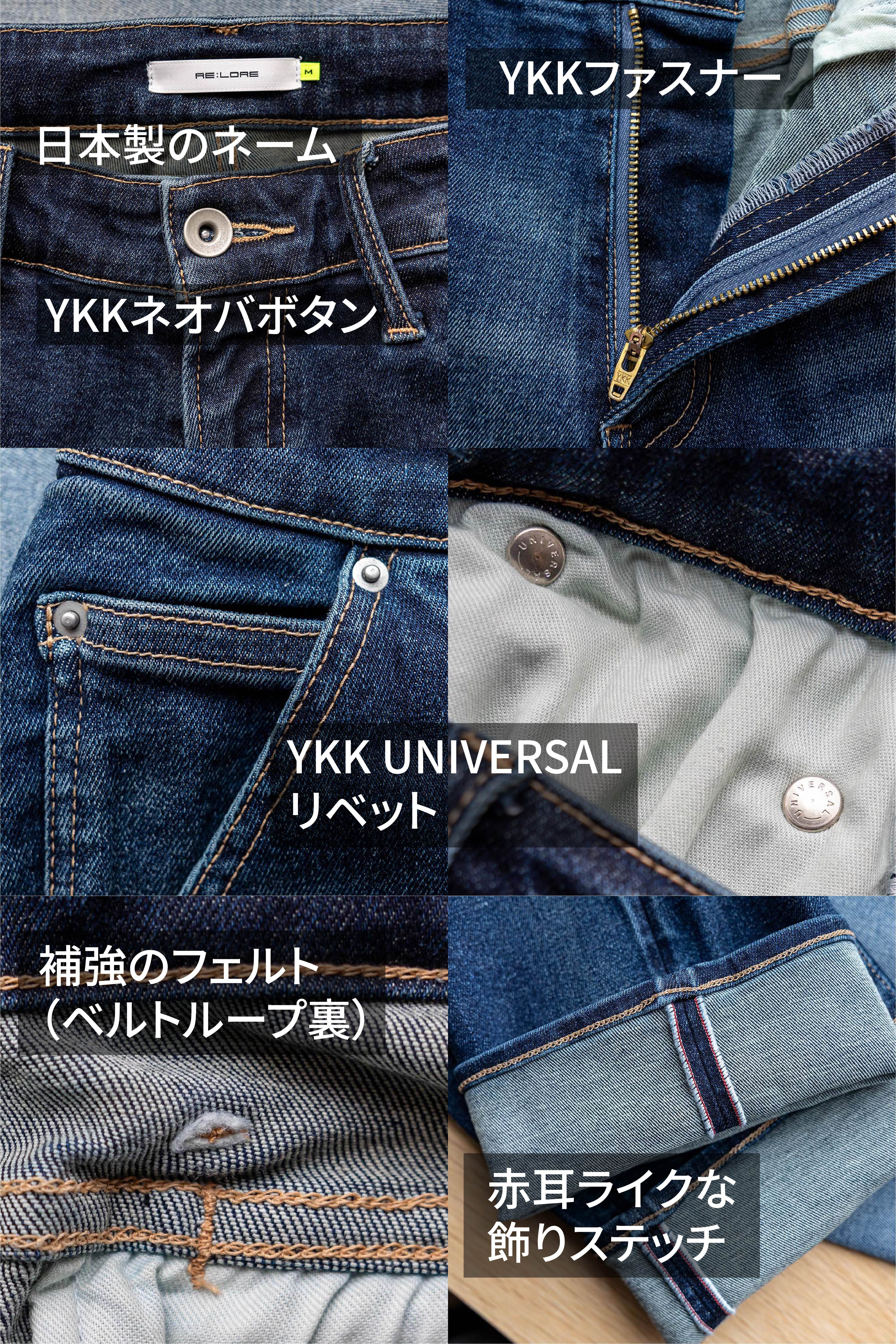 ボタン、ファスナー、リベット、ネームなどの付属品にもこだわり抜いています。