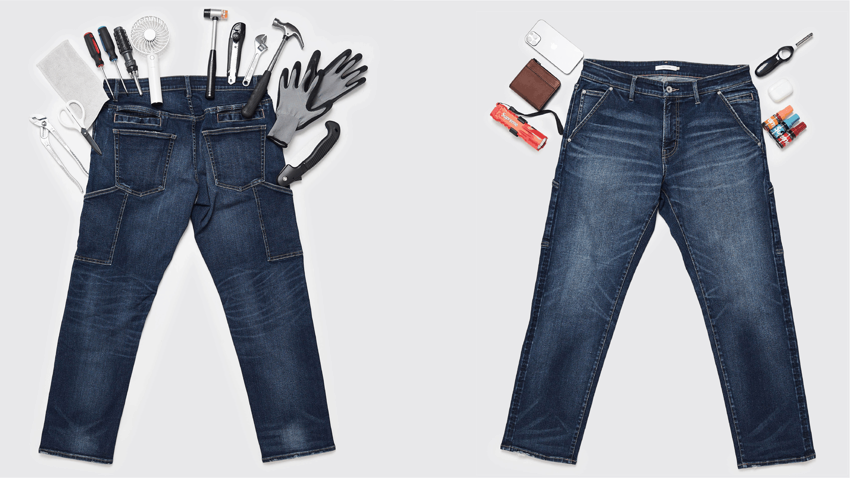 さらに、バックポケットの上に2本のループを左右対称に配置し、スタイリッシュな見た目をキープしつつ、一般的なハンマーループよりも利便性を向上させました。