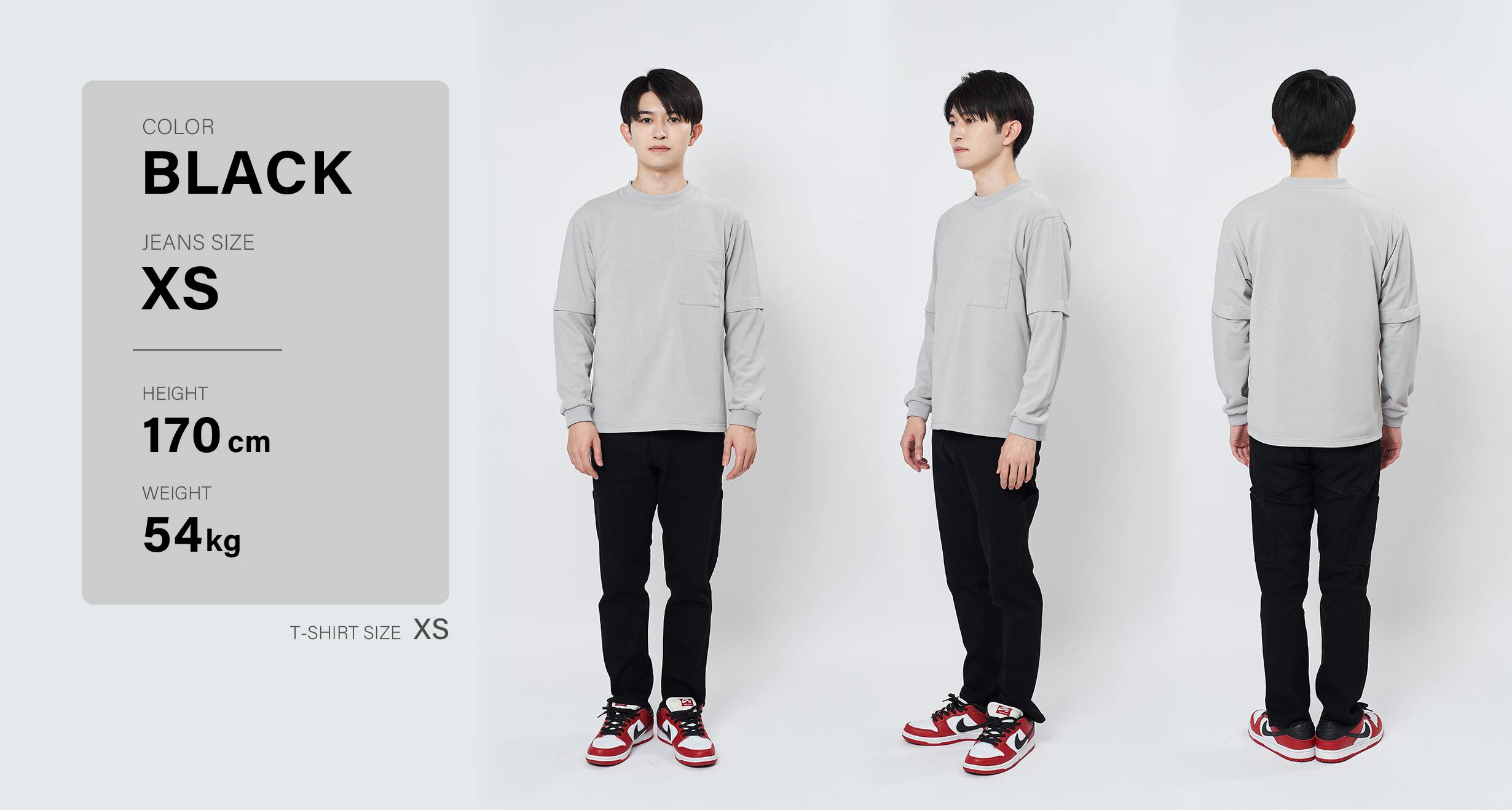 BLACKとGREYは着回しがしやすい、『同色系のGUNZEステッチ』を採用。