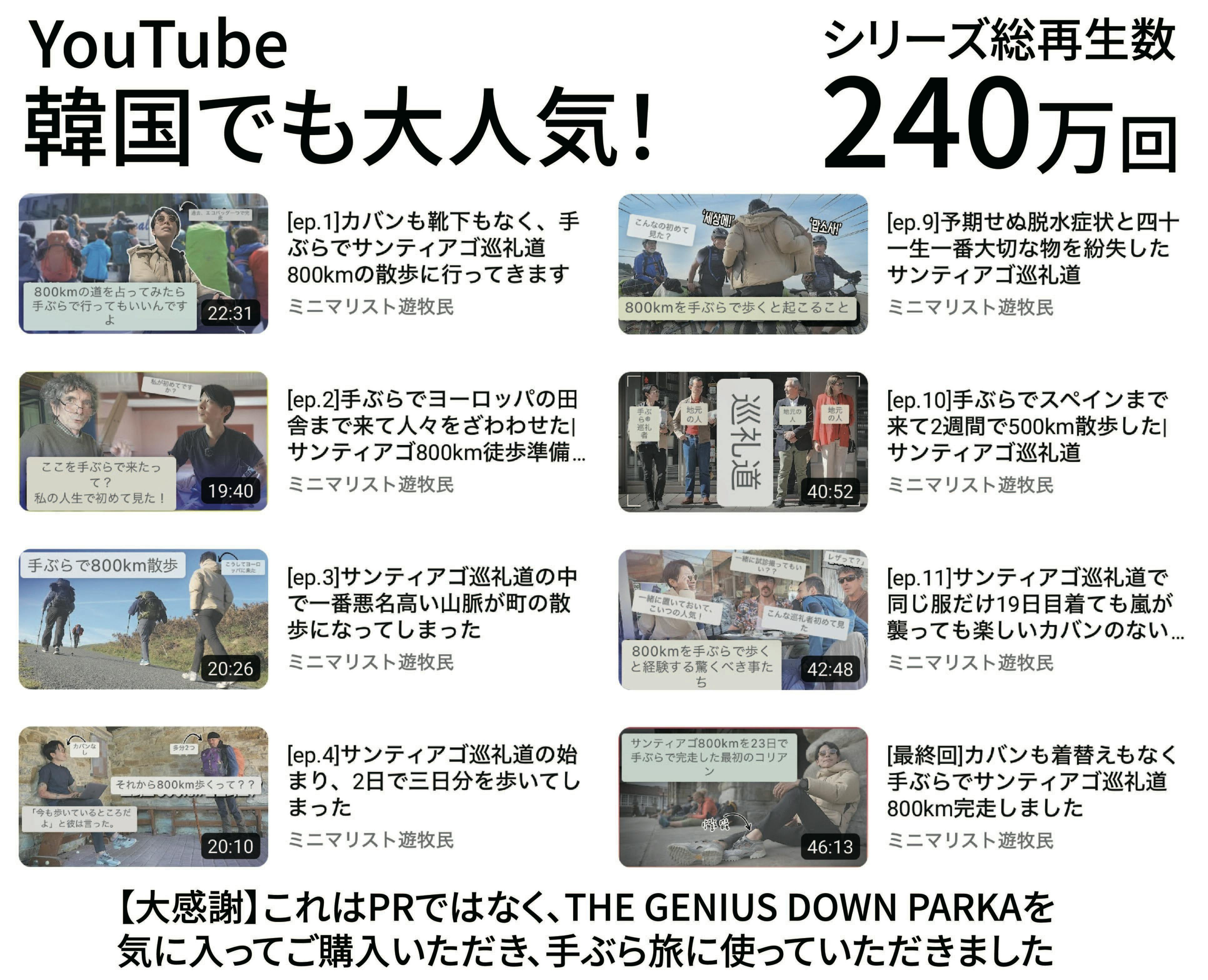最上位モデル「THE GENIUS DOWN PARKA」を着て、手ぶら800kmの旅に挑戦したYouTube動画