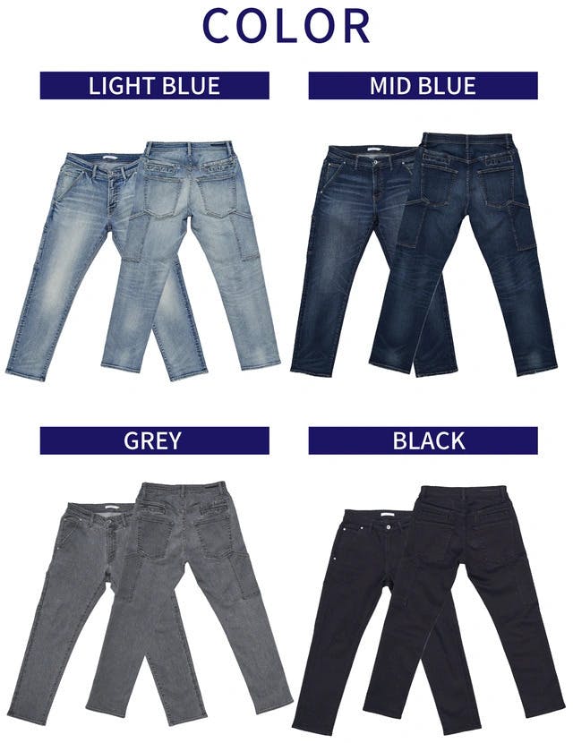 一般的なワークパンツよりも多い10個のポケットを搭載し、収納できる荷物の量は一般的なJEANSの2倍以上となっております!