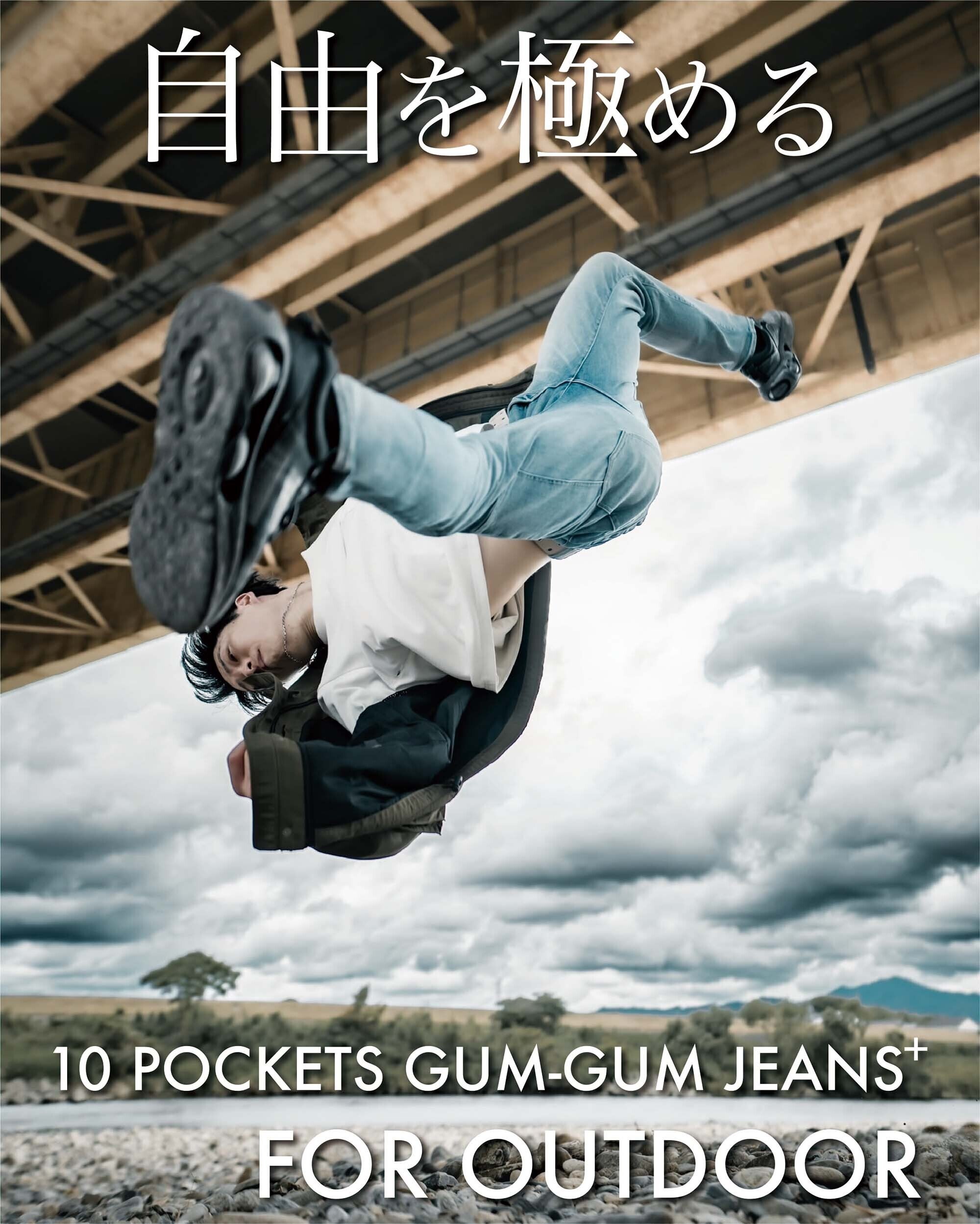 この『初代GUM-GUM JEANS』をベースにトレンドのワークパンツのデザイン性と機能性を追加し『10 POCKETS GUM-GUM JEANS+』が完成しました。
