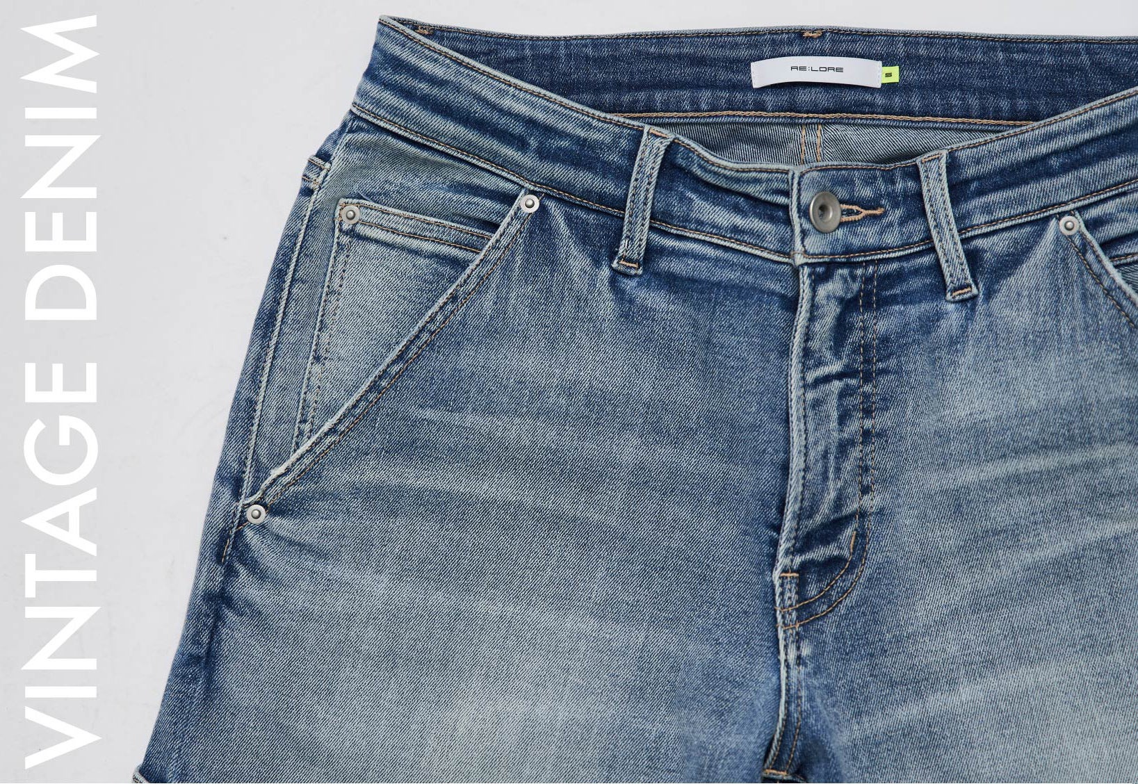 しかしRE:LORE™では品質を最優先としておりますので、ウエスト、裾口、ポケット口など特に伸縮性が必要な箇所にチェーンステッチを採用しております。