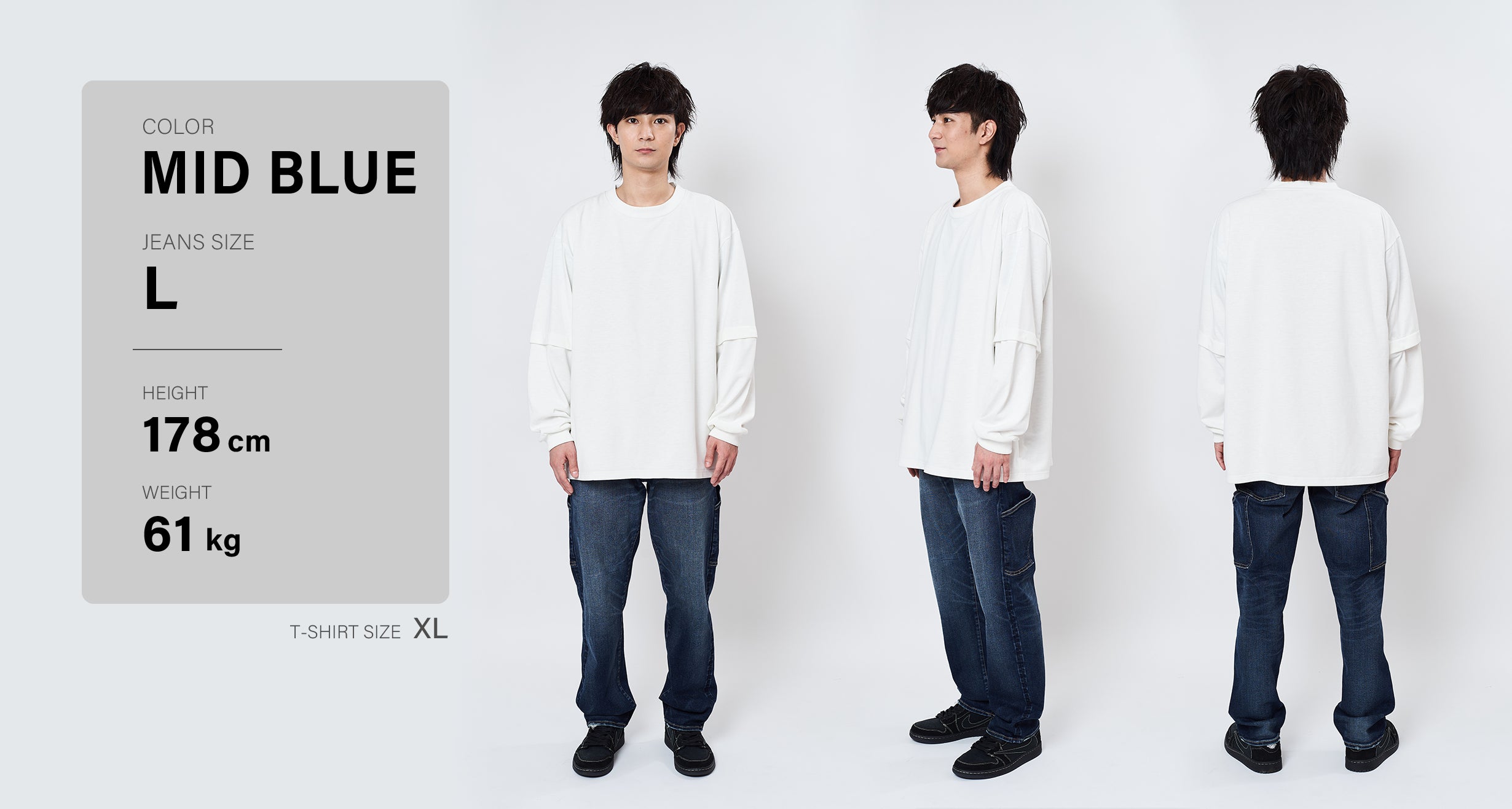 166cm 62kg JEANS LIGHT BLUE S着用