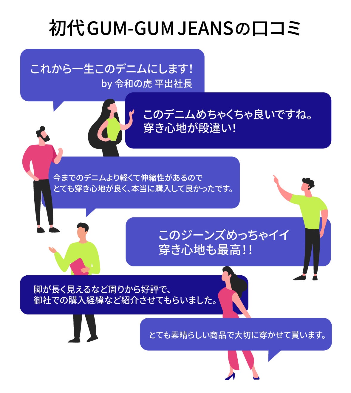 おかげさまで『初代GUM-GUM JEANS』は、お客様からお喜びのお言葉をたくさんいただくことができ、一般販売分もほぼ完売となっております。