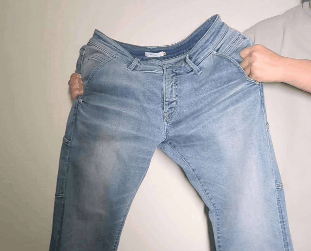 GUM-GUM JEANSは約2倍も伸びるため、動きやすさが十分確保されており、『美しい脚長シルエット』を優先した大人のワークデニムパンツを創り上げることができました。
