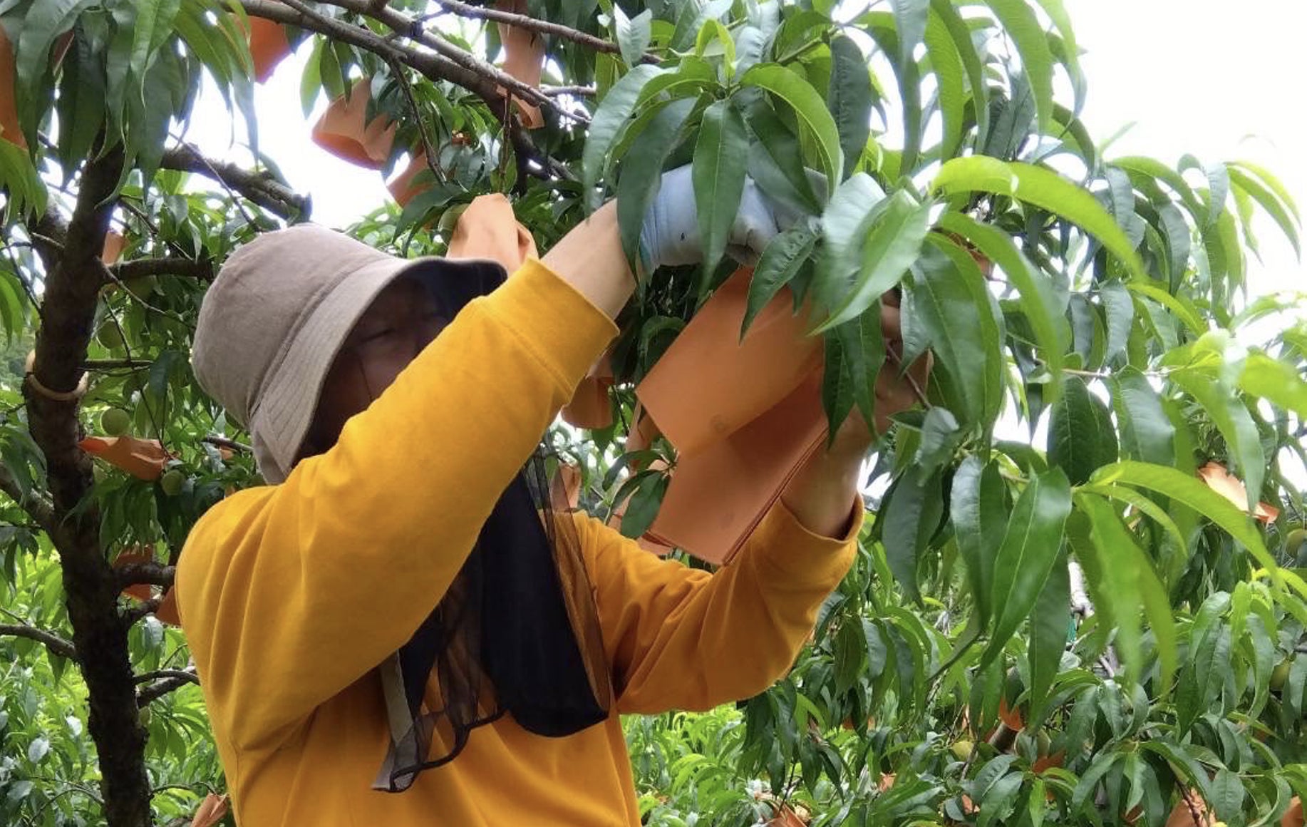 桃農園の作業風景