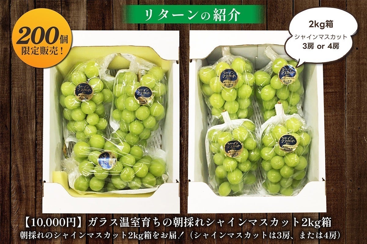 『ガラス温室育ちの朝採れシャインマスカット2kg箱』となります!