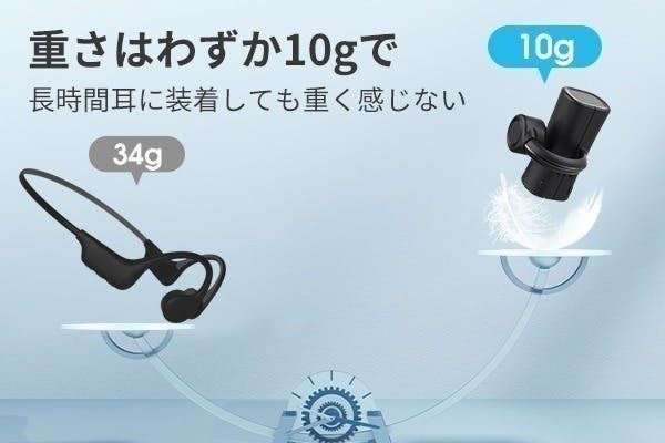 H01の重さはわずか10g、通常の骨伝導イヤホンの約3分の1なので、長時間耳に装着しても重さを感じません。