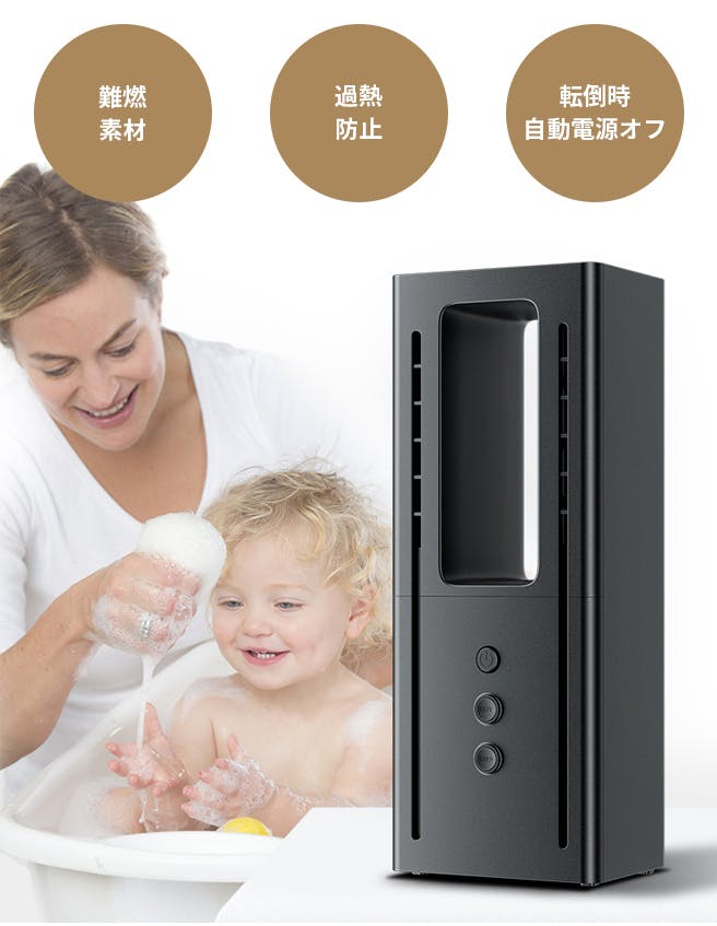 羽根がない構造を採用しているので、小さな子供のいる家庭でも安心して使用いただけます。