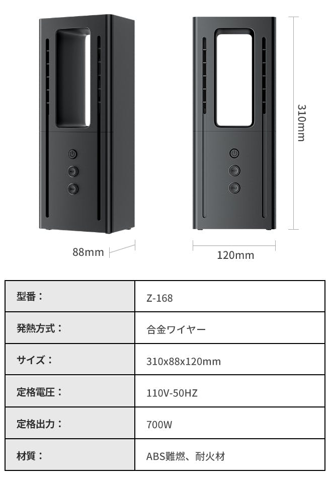 「Z-168」の速暖性に優れており、電源を入れると3秒速暖であっという間に暖かさをお届けします。