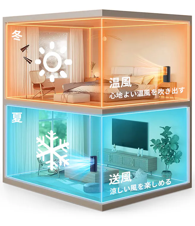 送風・温風に対応モデルで、季節に合わせて使い分けられます。