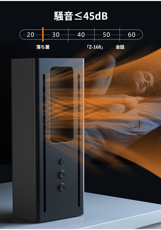 通常起動時の騒音は最大でも45dBを超えない静音設計のため、オフィスで使用しても周りに迷惑をかける心配がありません。また、夜間に電源を入れた場合でも睡眠に支障をきたしません。