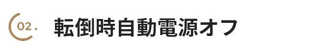本体が35°以上傾くと自動で電源がOFFになります。地震やうっかり倒してしまったり時でも火傷やトラブルを抑えることができます。