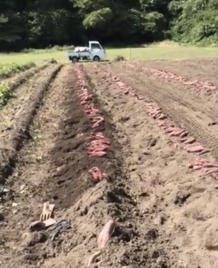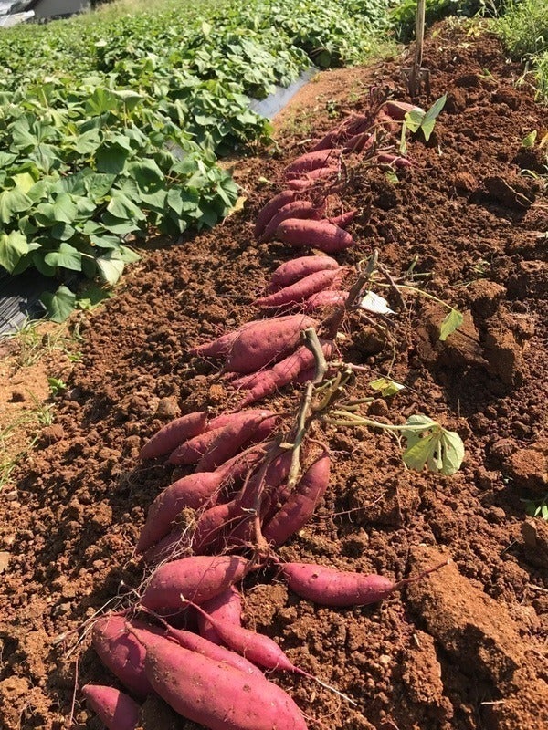 害虫、イノシシと闘いながら毎年糖度14度以上のサツマイモが出来上がっております。