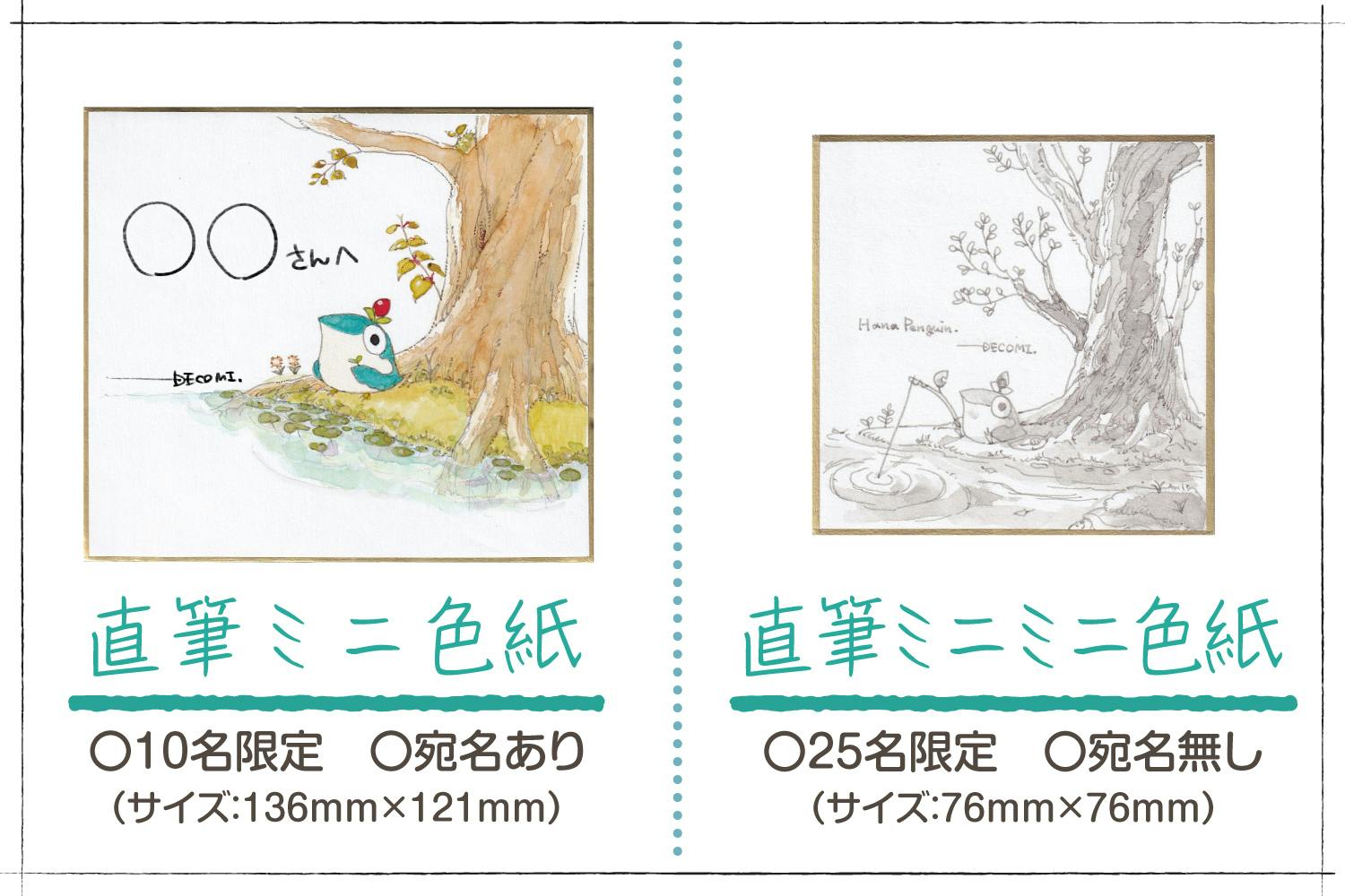 直筆色紙は2種類あり、どちらも手書きのオンリーワンイラスト色紙となります。