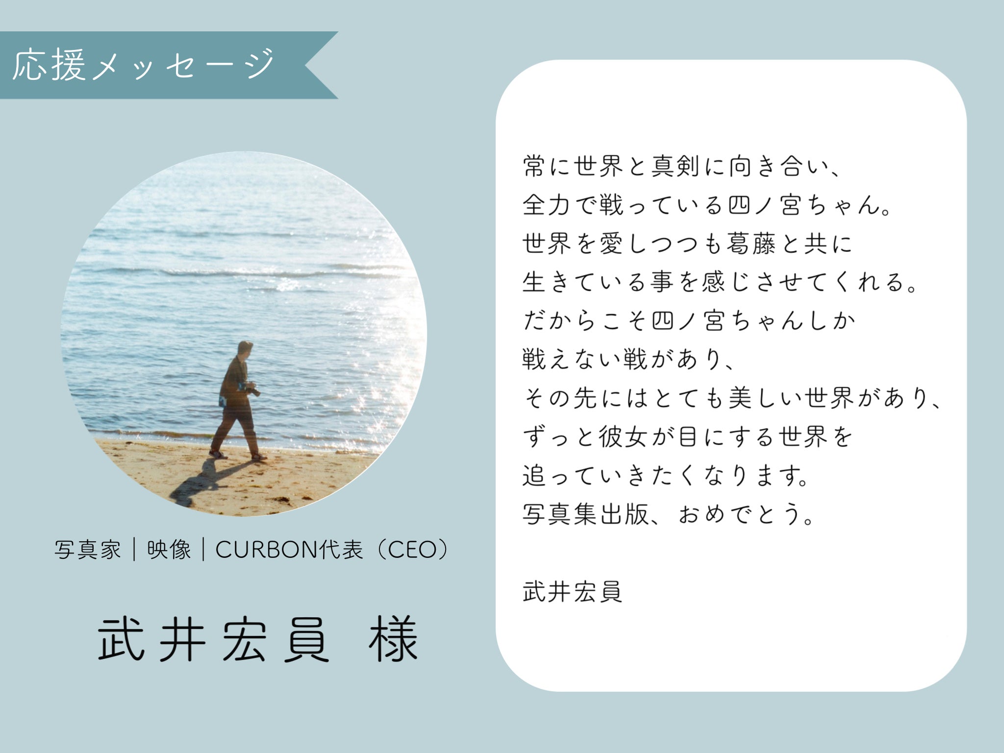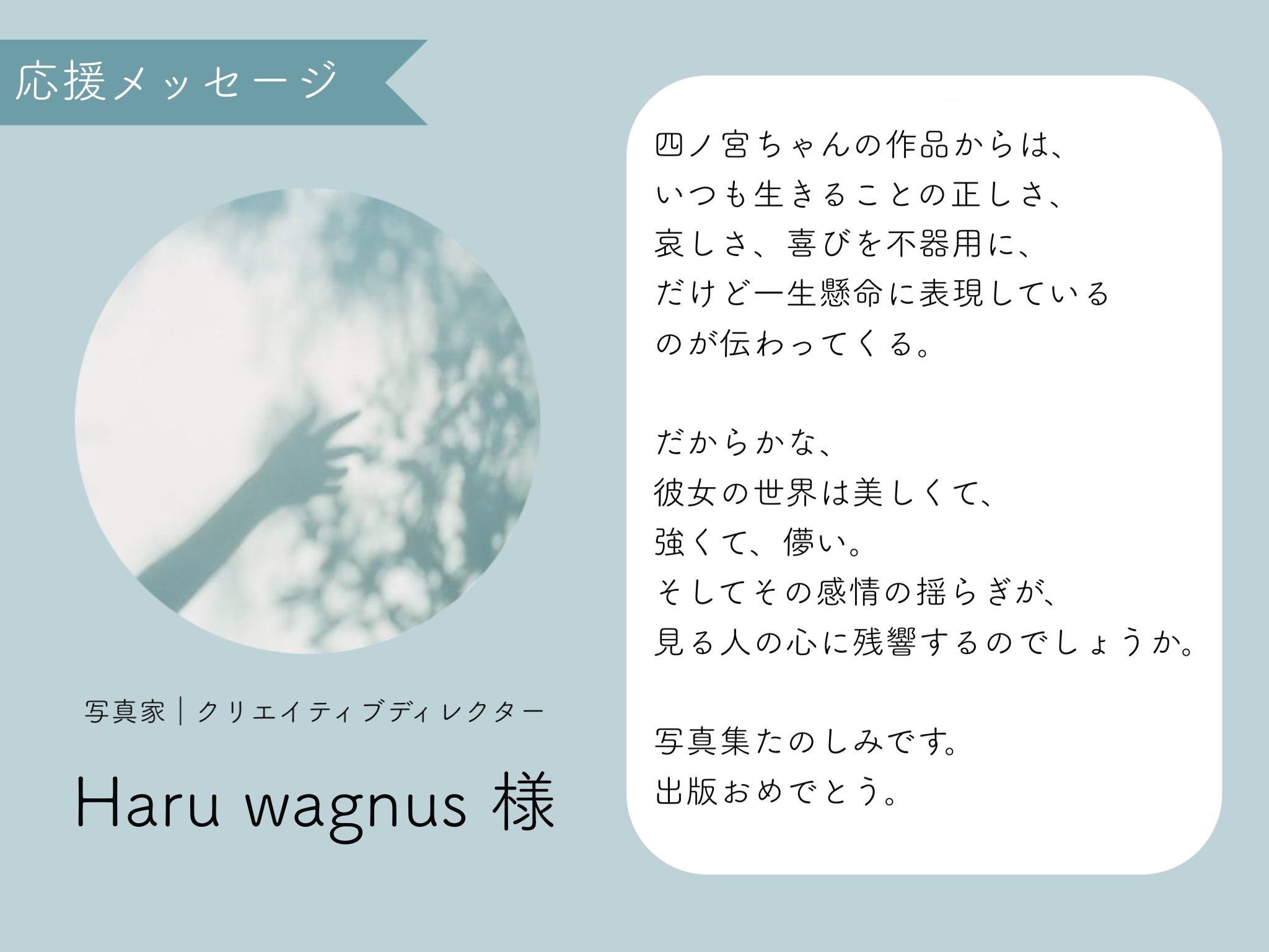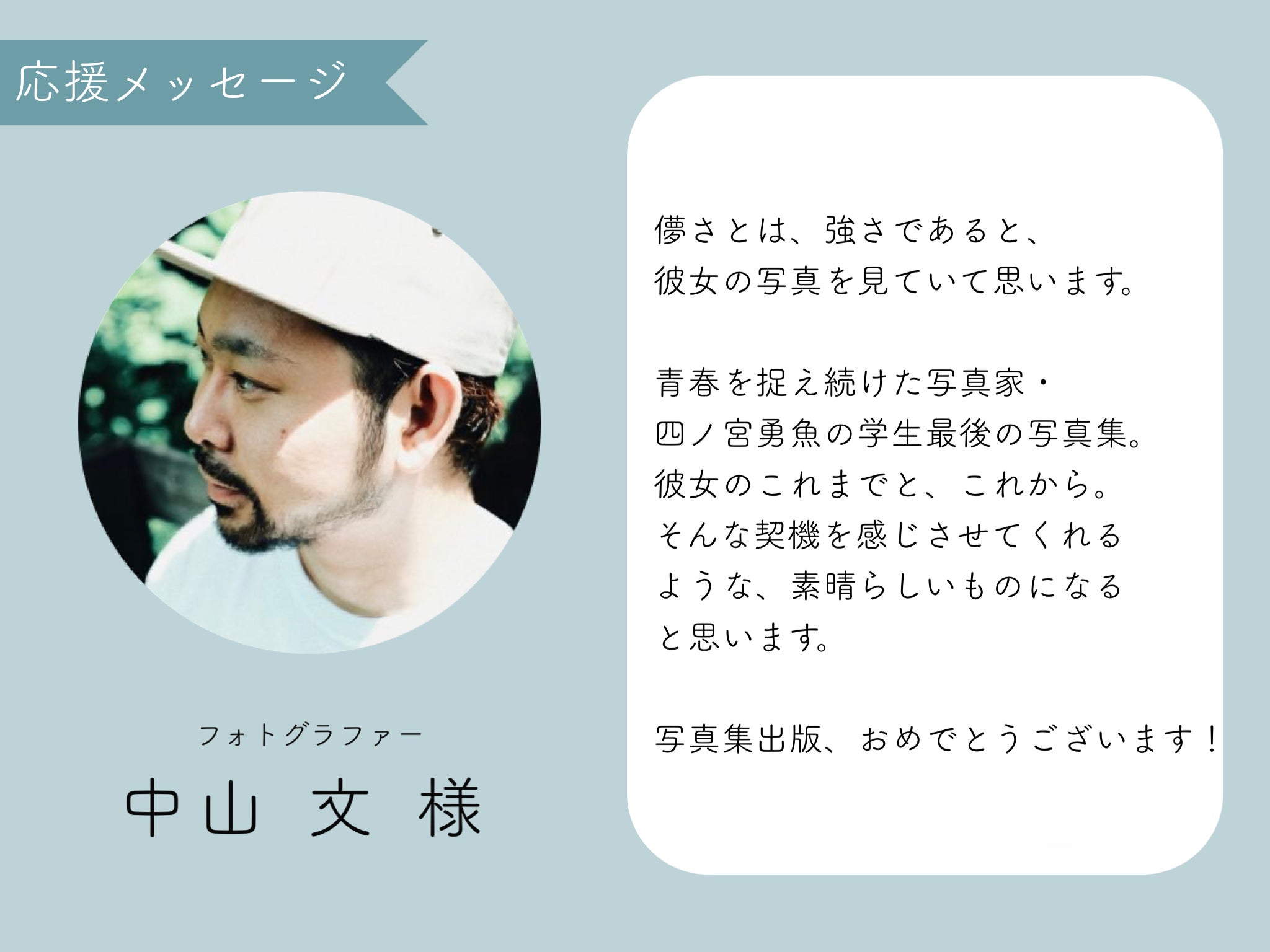 私は、過去の自分のような誰かを救える存在になりたいと思っていました。この写真集を出版することで、写真によって救われる誰かがいると思っています。