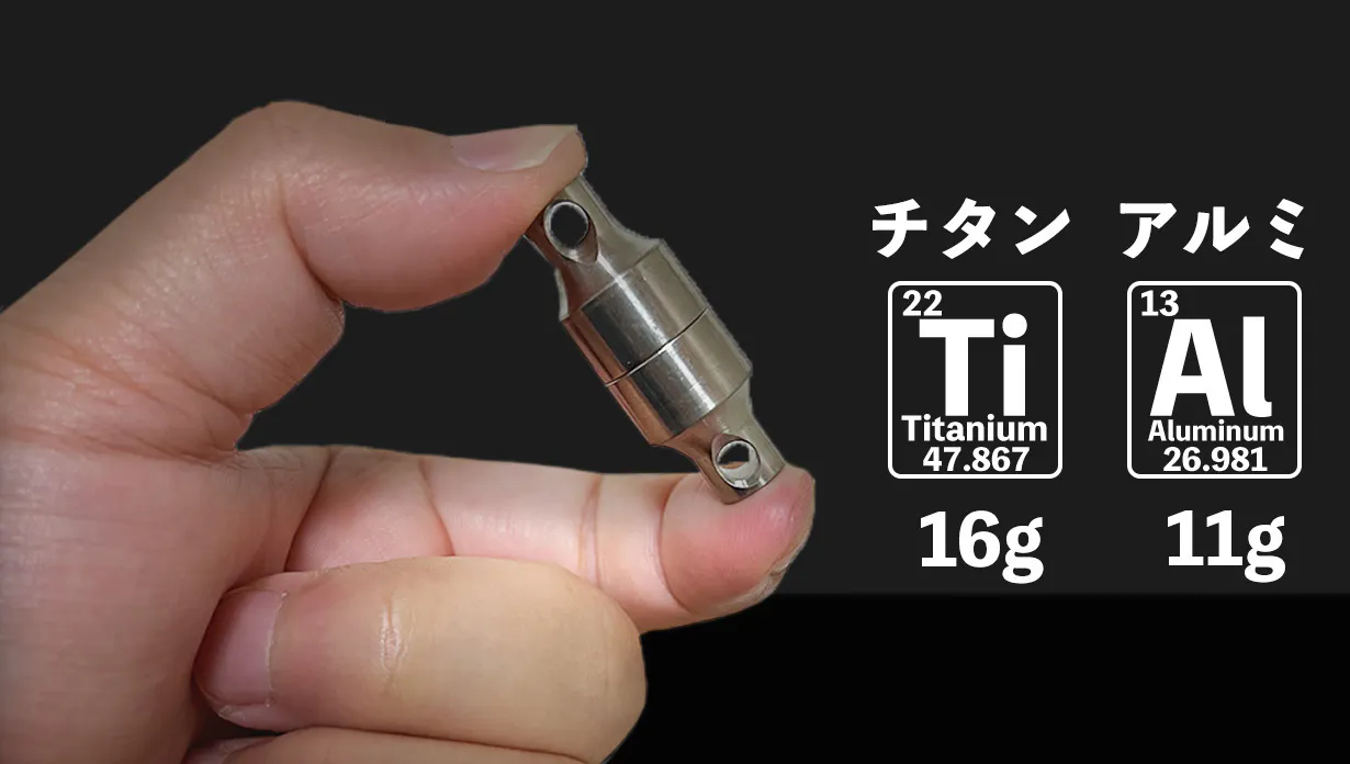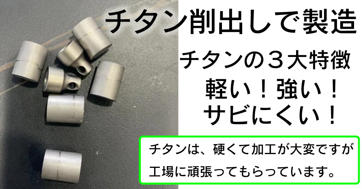 せっかく作るのだから頑丈で好きな素材チタンとアルミを使用しました。