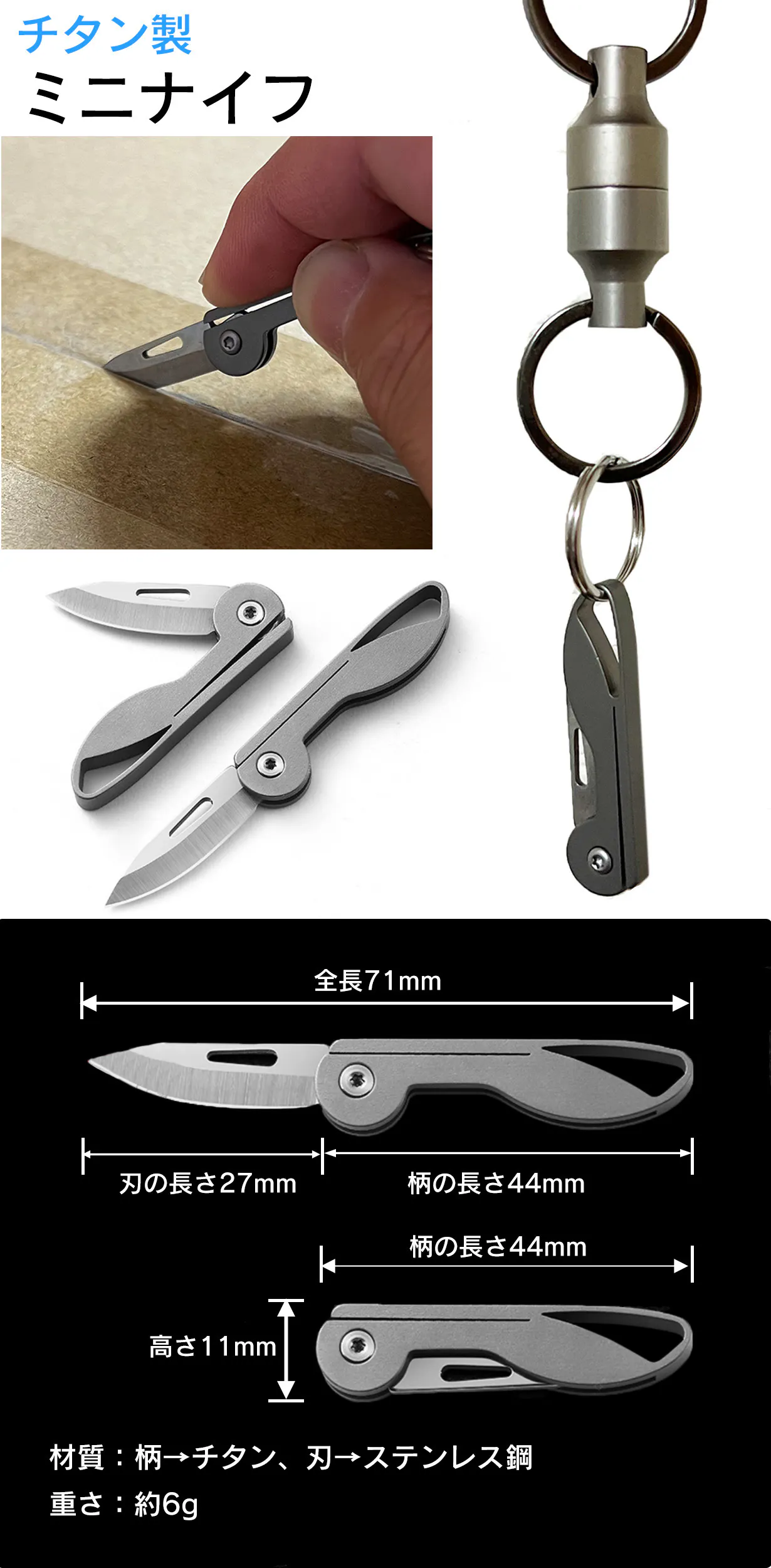 刃渡が2.7cmと小さく通販のダンボール開ける時などのちょっと使用するのに便利な大きさです。とても軽くマグチコと一緒だったら使いたい時にすぐご使用になれます。
