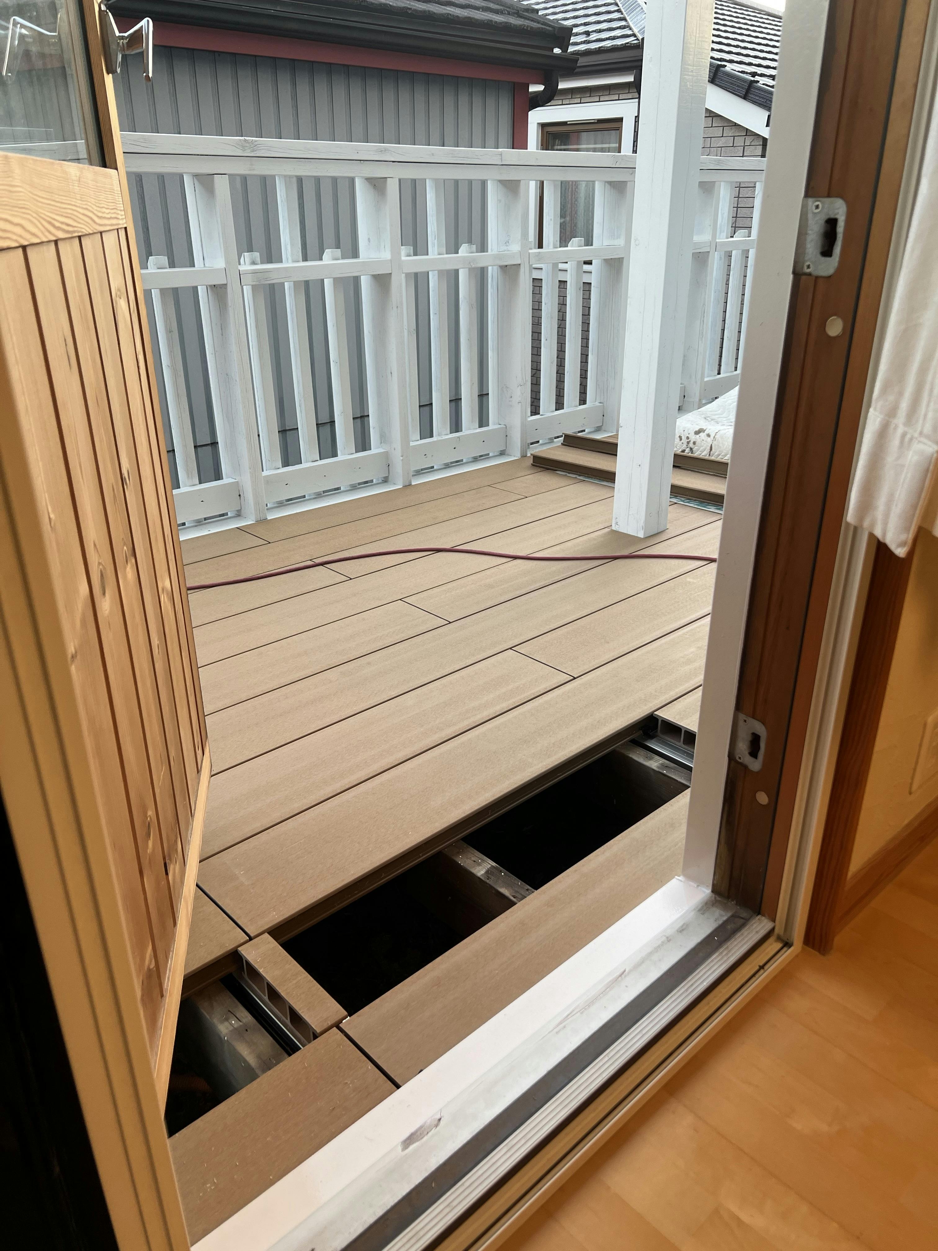 腐っていたデッキの木は取り除かれ、完成すればお部屋からも出られるし、外部からも入れるようにしていきます!