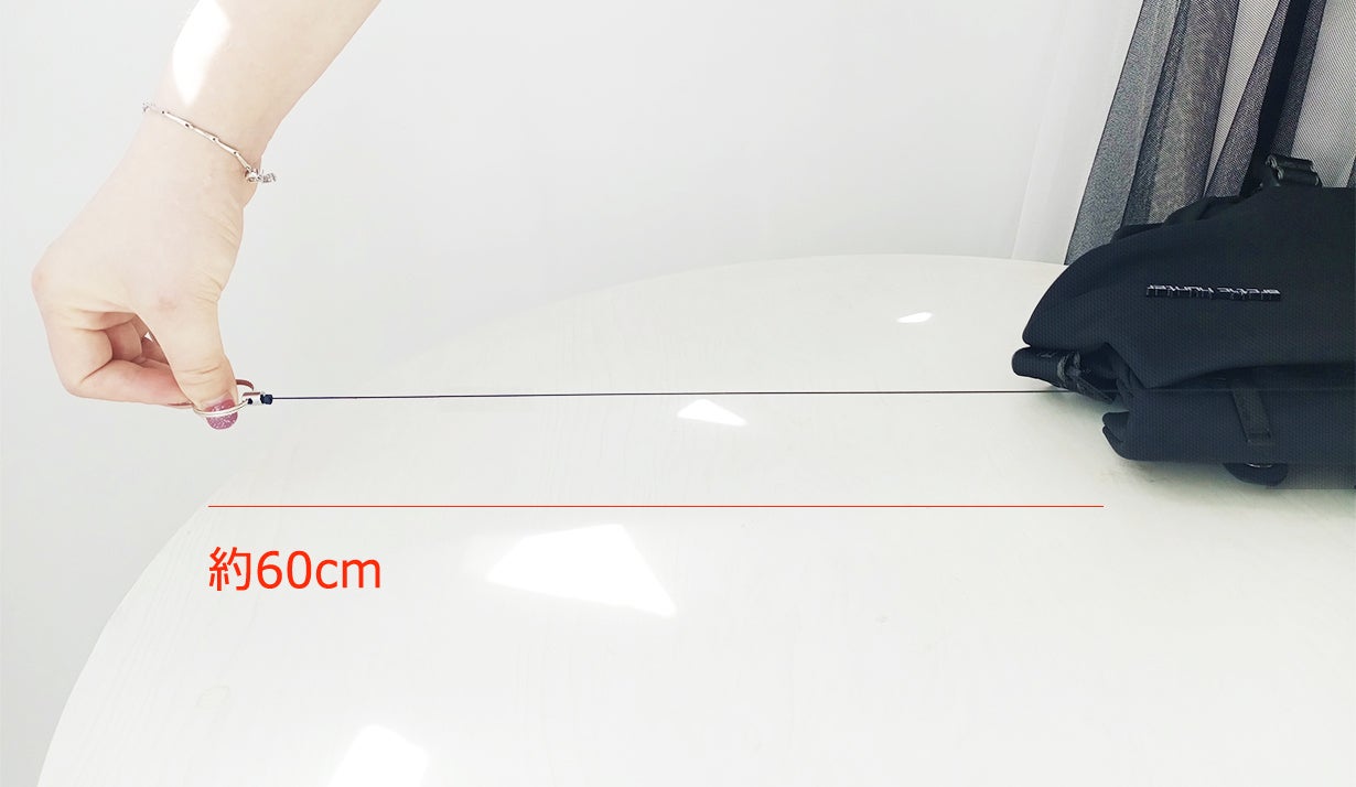 このキーホルダーは長さ約60cmまで伸びるので、鍵がついた状態でキーホルダーを伸ばしそのままドアを開けることができます。また、鍵を使ったあともキーホルダーは元の位置に戻るので、鍵をどこにしまったかわからずバッグの中を探す必要がなくなります。この伸縮キーホルダーはとても便利な機能になります。
