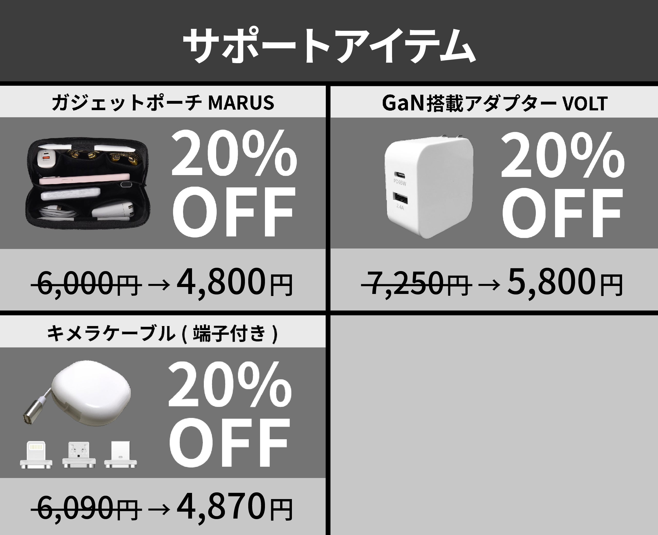 今後も、適正価格にてお客様へ更なる利便性を提供するために弊社独自規格での製品及び、革新的な商品の開発に努め、独創性のあるガジェットブランドとして努めてまいりますので、見守ってくださいますと幸いです。