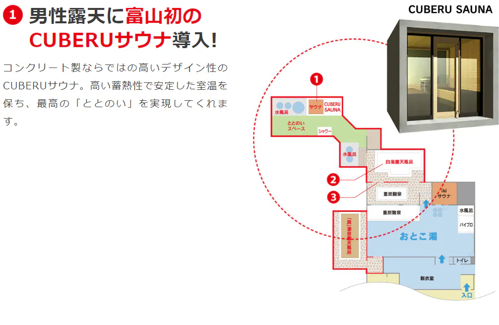 2023/12/09 19:48今回のリニューアルの大目玉の一つである露天にサウナの設置が完了しました。サウナは富山県では初の導入となる「CUBERU」を採用し、はるばる北海道から運ばれました。見た目のおしゃれさはもちろん、中身も高い蓄熱性を兼ねそろえ、とってもいい感じです♪男性のお客様どうぞお楽しみに!!! もっと見る【残り1週間】一番サウナ&一番風呂入浴券のリターン特典を追加いたします!