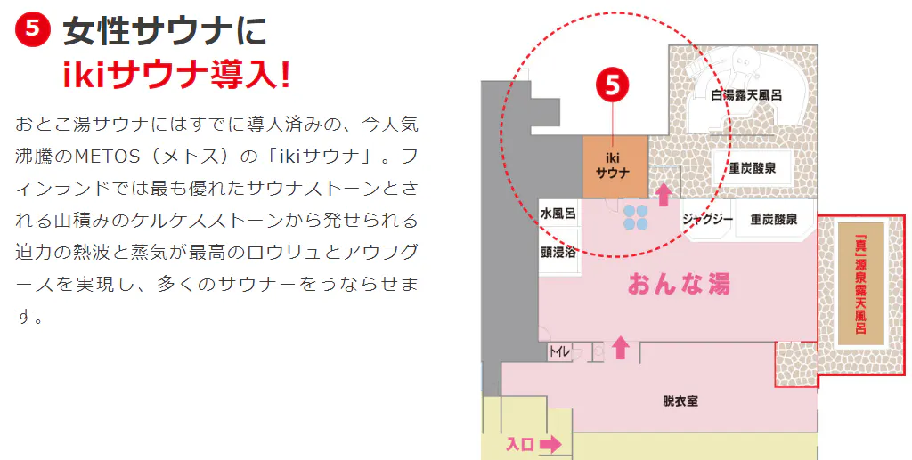 そして今回、原価高騰などのピンチをチャンスと捉え、今まで以上にお客様に楽しみと驚きを感じていただける施設にするため、当館の温浴エリアの新設および長年の課題であったメンズフロアの露天エリア拡大および新サウナ導入をメインとした開湯以来最大のリニューアル工事を実施いたします。