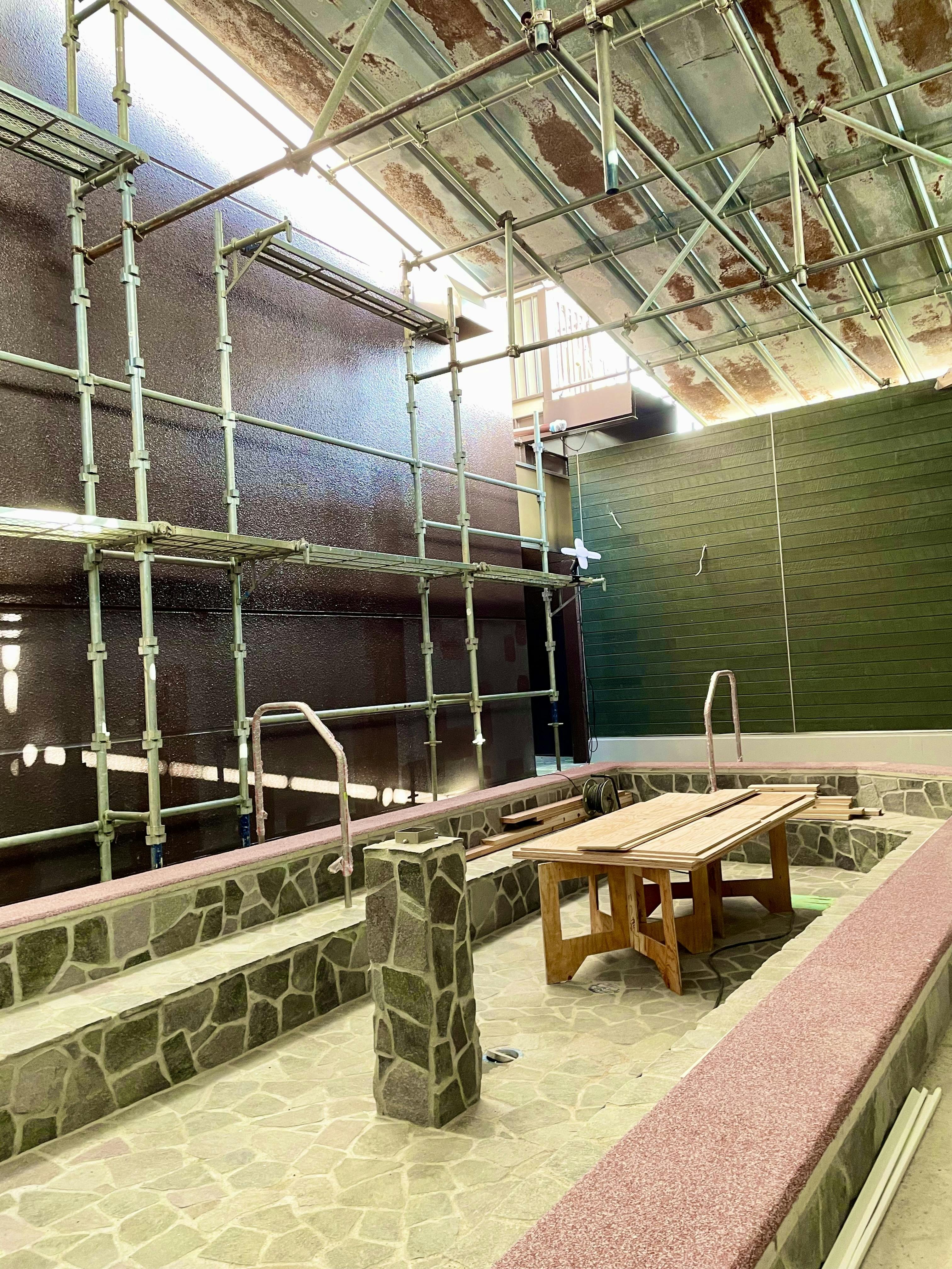 男女とも外に新しく作っている真源泉が楽しめる大浴槽が
