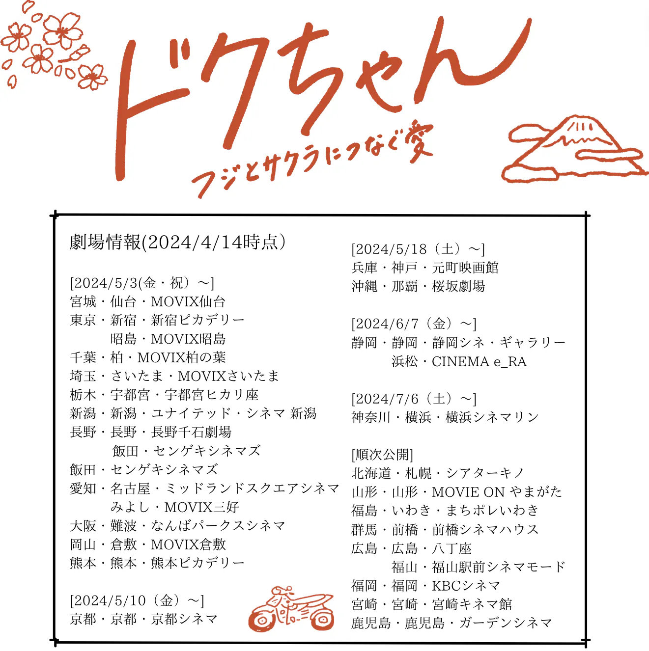 ドクちゃんの半生を映すドキュメンタリー映画、『ドクちゃん -フジとサクラにつなぐ愛-』