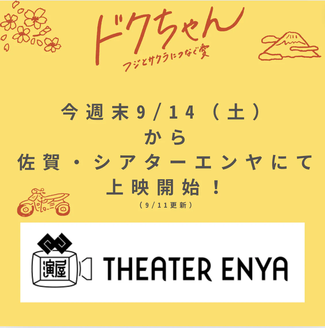 『ドクちゃん -フジとサクラにつなぐ愛-』を、今週末は佐賀のシアター・エンヤさんで行われる、「福祉映画特集」にて上映いただきます。