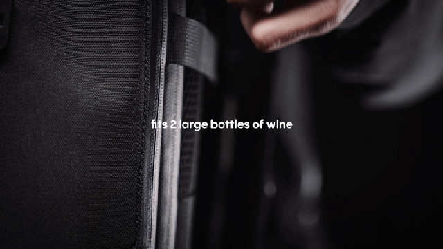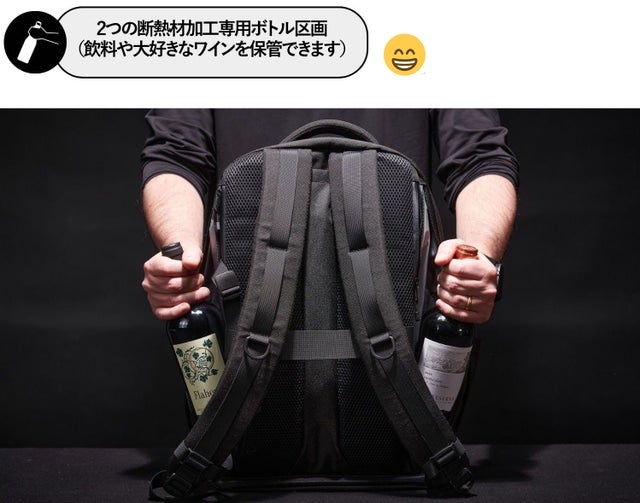 大きな2本のボトルの収納スペースがあります。この区画は断熱材仕様になっていますので、お気に入りのワインや飲料の保管にも適しています。三脚等、長い物体の収納も可能です。
