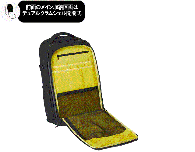 背面にシャツマスターと同じ面ファスナーがあり、簡単にバックパック内に接着できます。この革新的なアクセサリーは、貴重で繊細なガジェット系を保護するために特別に設計されております。またホテルに宿泊している際は、ポーチとして最小限の荷物だけを持ち休憩スペースに移動できます。