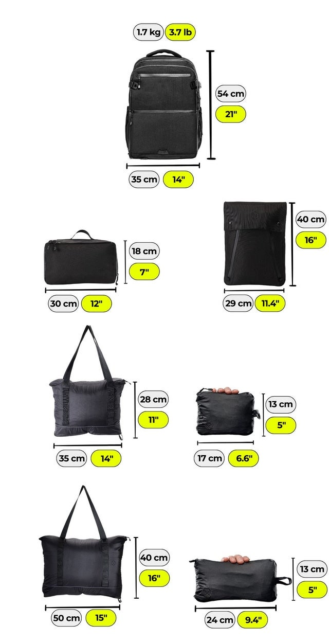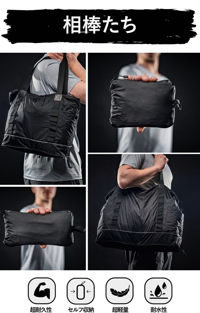 超耐久性、超軽量でセルフ収納、防水、これら機能を備えたトートは、LIMITLESSバックパックの究極の相棒です。