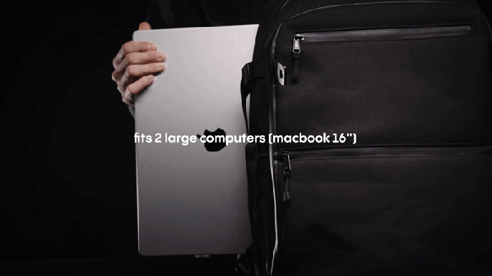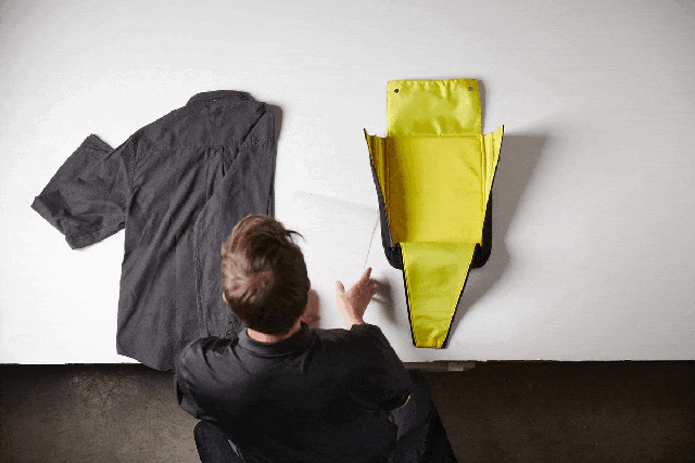 LIMITLESSバックパックと同じグラフェン配合生地で構成されています。バックパックのメイン収納部に簡単に取り付けられる面ファスナー式のバックグリッドと、数秒であっという間にシャツを畳み込むボードと、最大3枚のシャツを収納できる十分なスペースがあります。どんな状況でも大事なシャツを綺麗に収納できるように準備されています。
