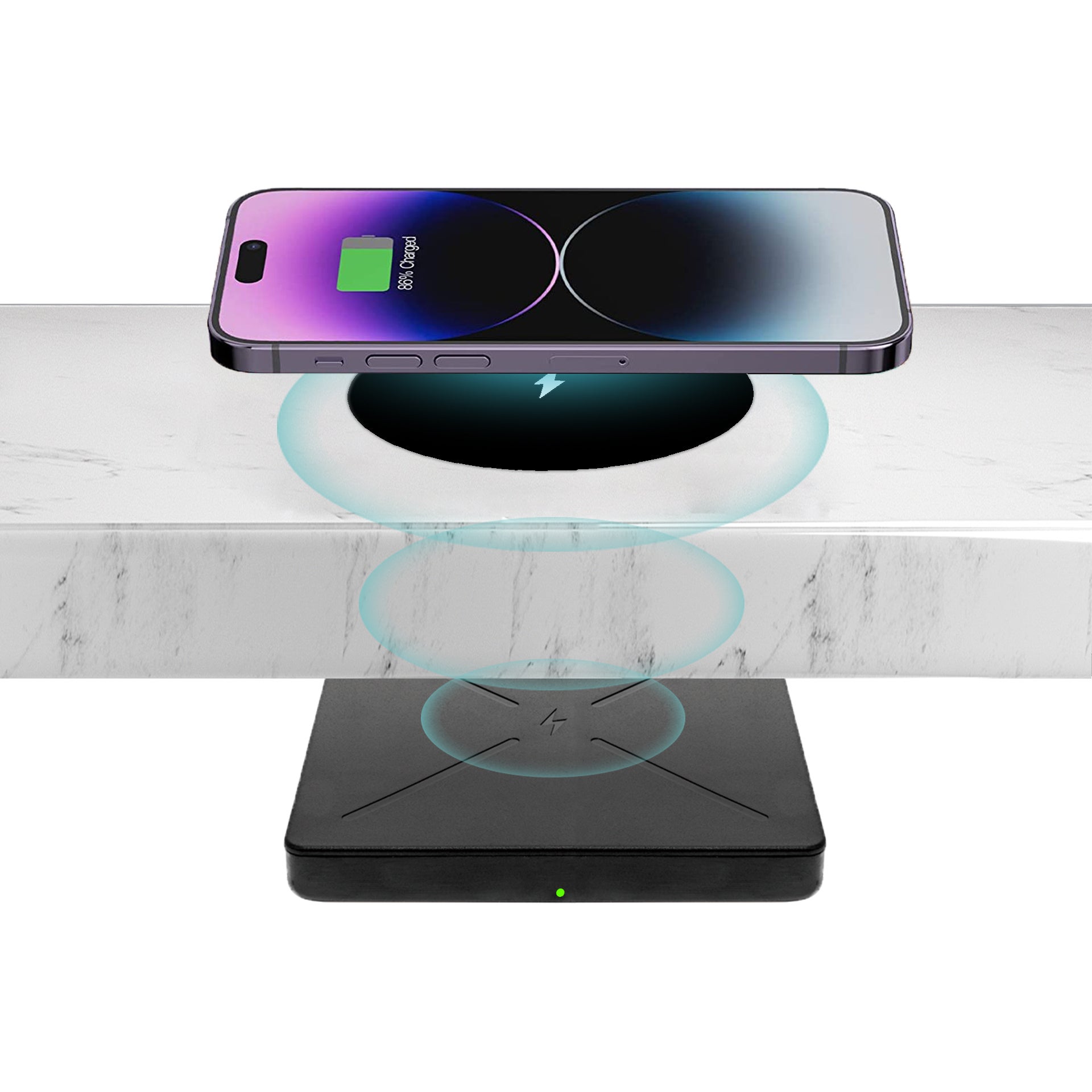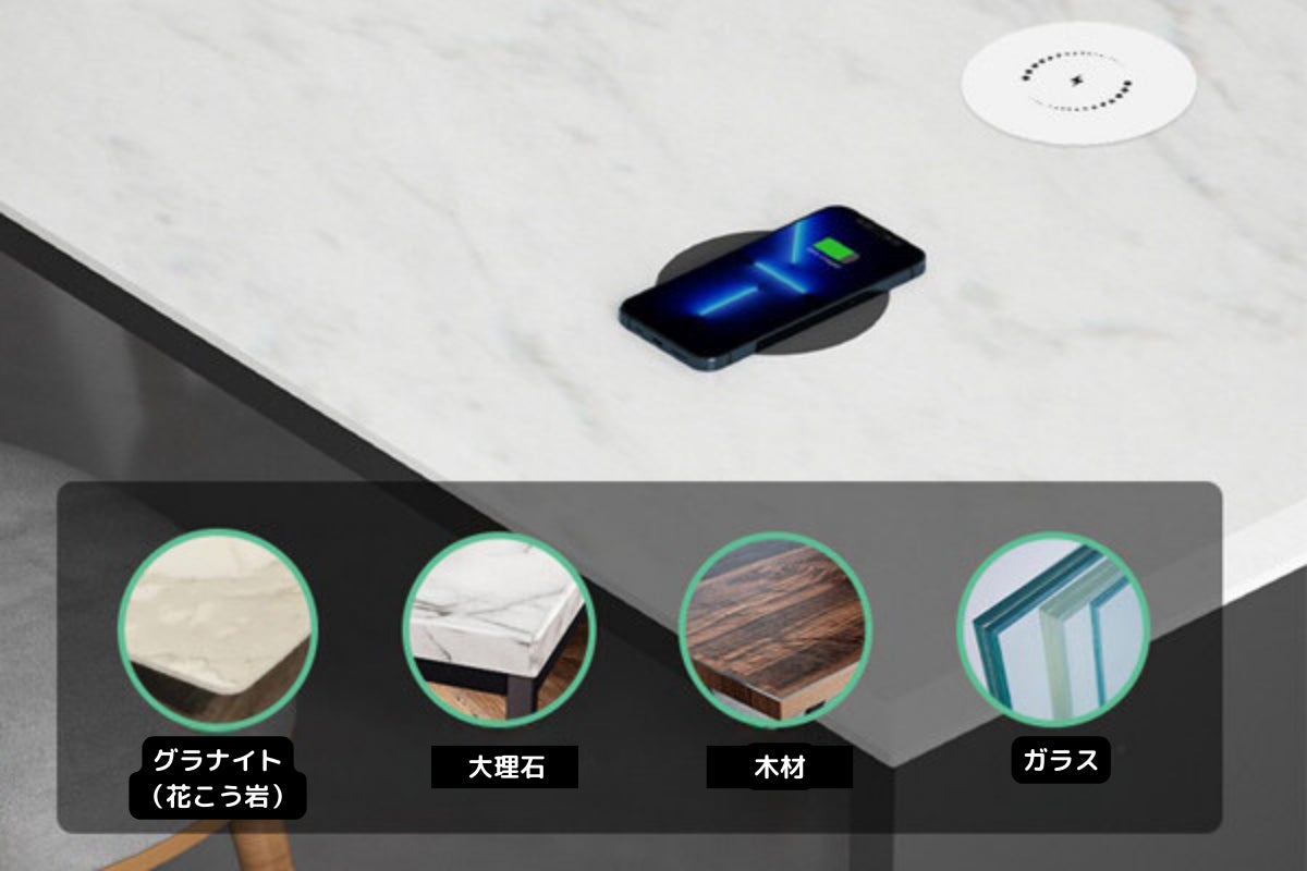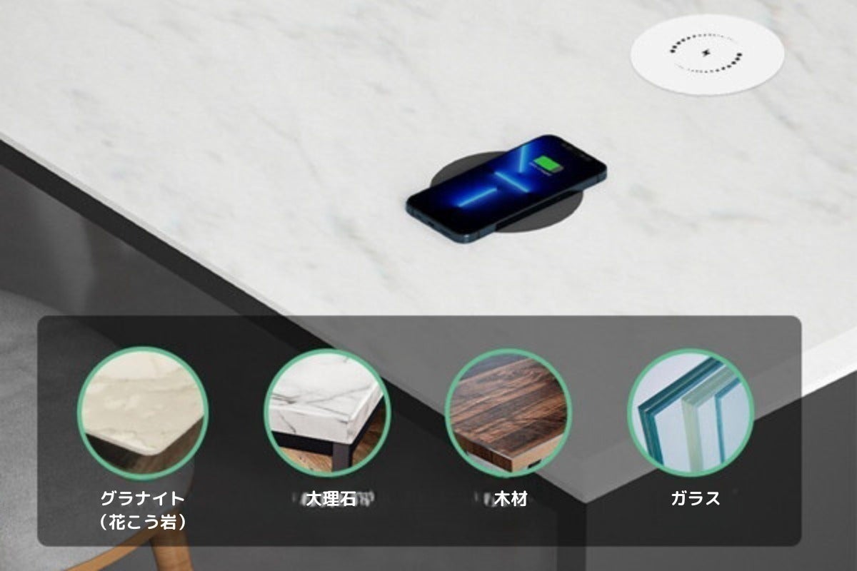 充電距離は20〜50mmで、木材、大理石、御影石などのほとんどのテーブル材を貫通できます。