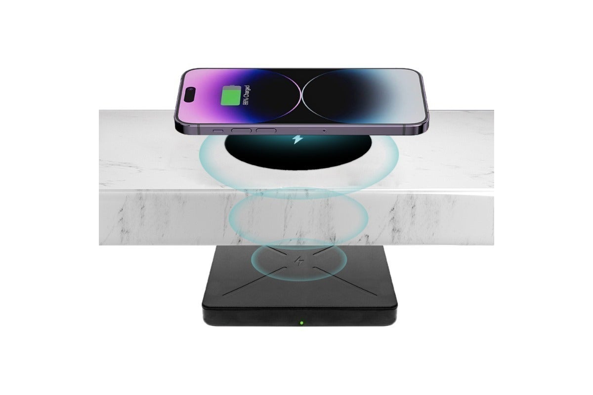 見えないワイヤレス充電器は、テーブルやデスクの下に置いて、モバイルデバイスを充電できる長距離ワイヤレス充電器です。