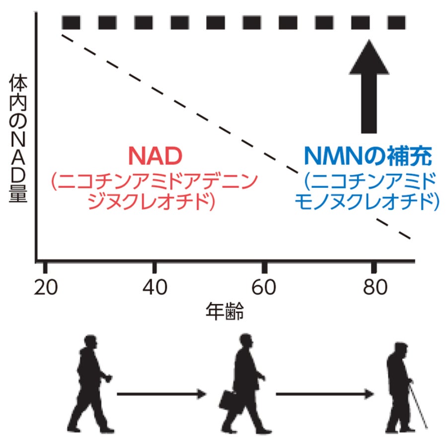 加齢に伴い生成能力が低下することで細胞の老化が進む構造となっています。