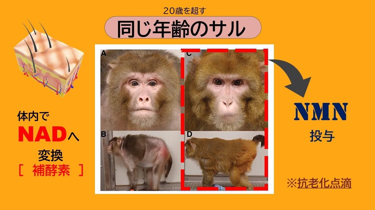動物の老化については【NAD】の減少が引き金であることが、世界の抗老化研究者の共通認識になりつつある今、このNMNを摂取することで、体内でNADという補酵素に変換され老化や寿命を直接的にコントロールができると考えられていますのがNMNです。このNMNに本件の【細胞培養上清液】を融合させ、新たなより効果の高いサプリメントが今回の狙いです。