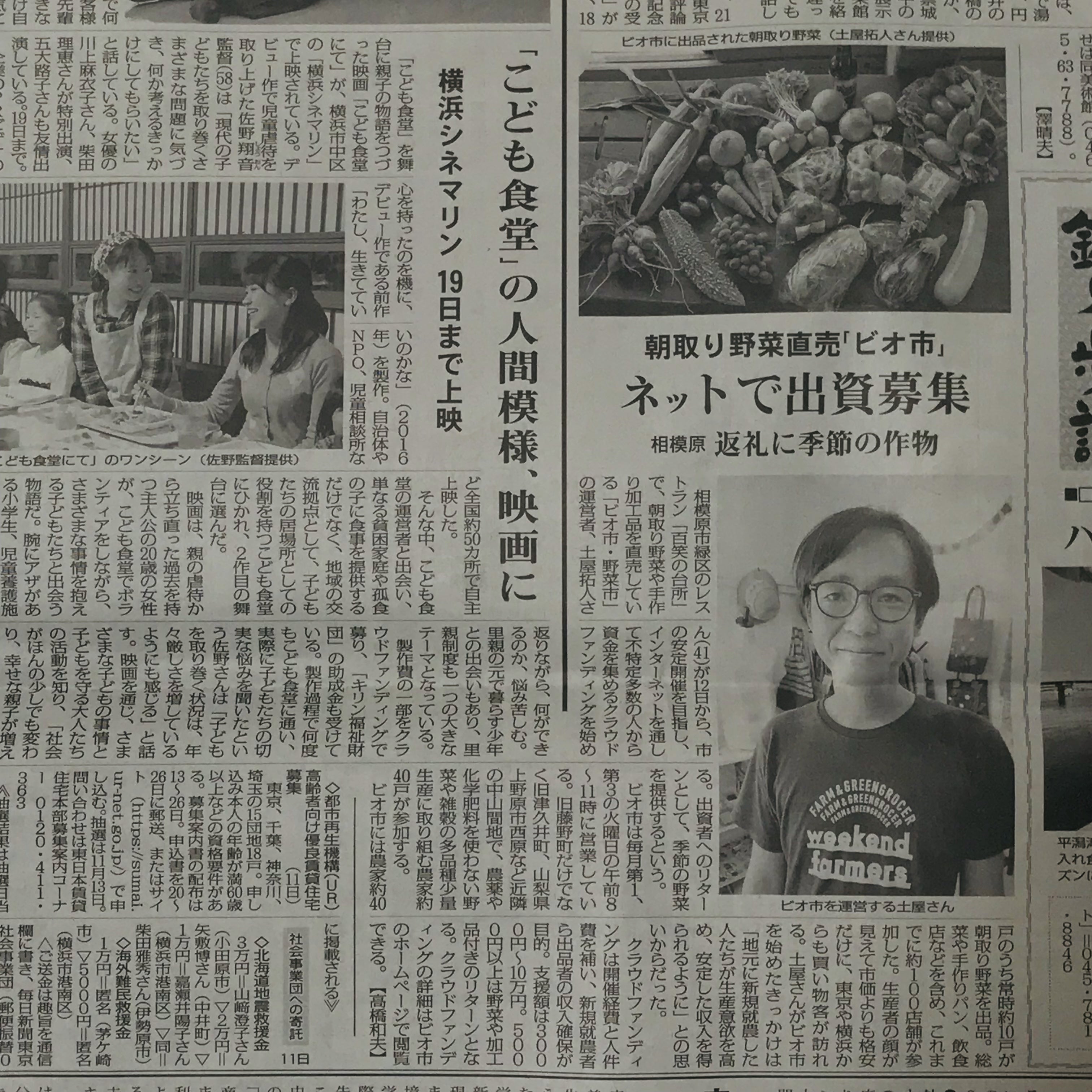 毎日新聞がビオ市の活動と、安定開催&販路拡大のためのクラウドファンディングで定期宅配を仕掛けることを記事にしてくれました!!