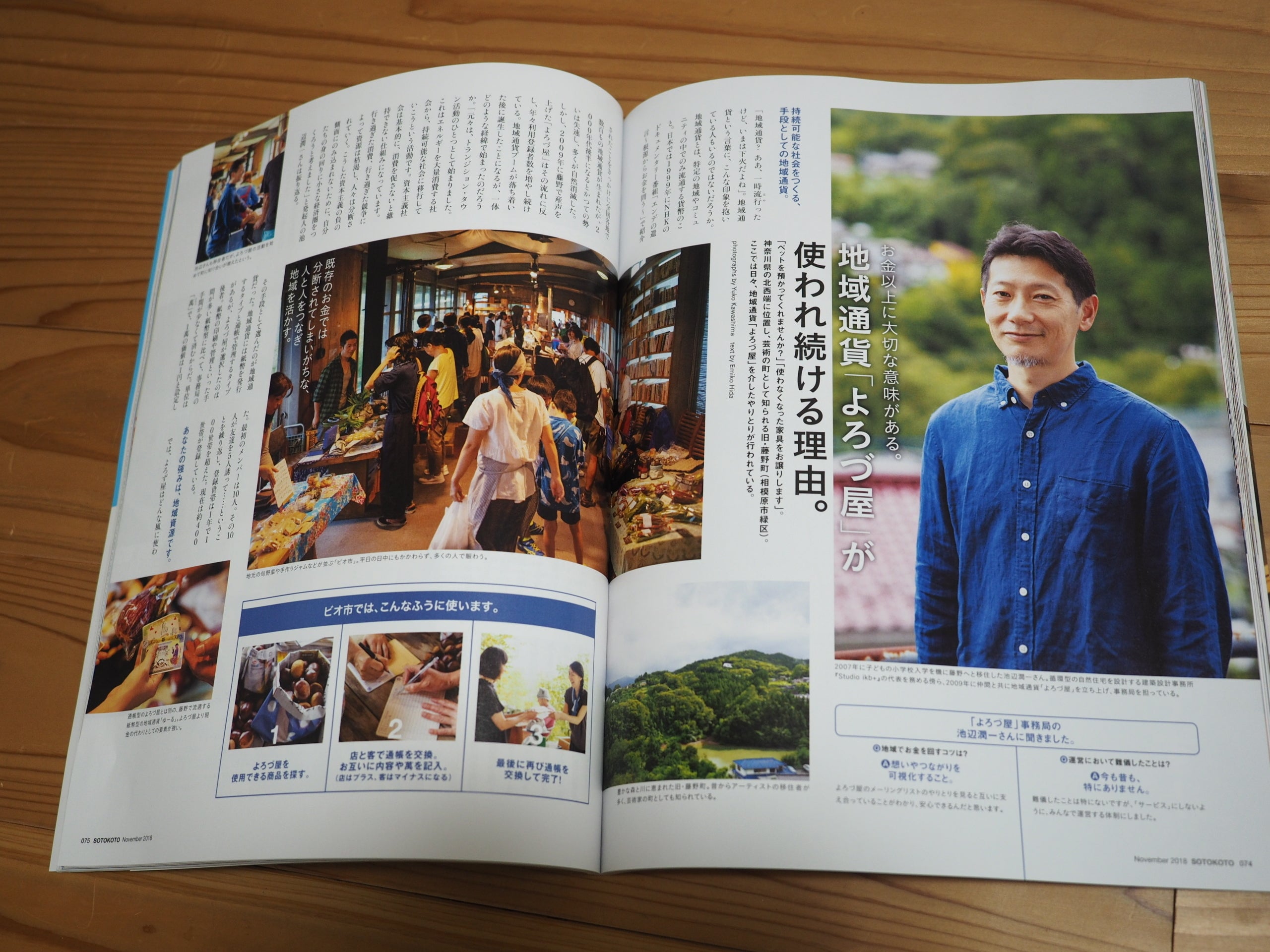 今発売中のソトコト11月号に【ビオ市/野菜市】と【ふじの地域通貨よろづ屋】の取り組みが紹介されました。