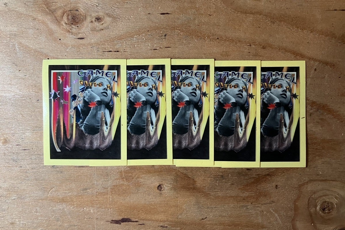 リターン品はCAMELCLUTCH手描きロゴTシャツ、7周年コラージュアートの半袖Tシャツ、長袖Tシャツ、スウェット、マグカップ、ステッカー。6周年コラージュアートグラフィックで初のショップオリジナルデッキからお選びいただけます。